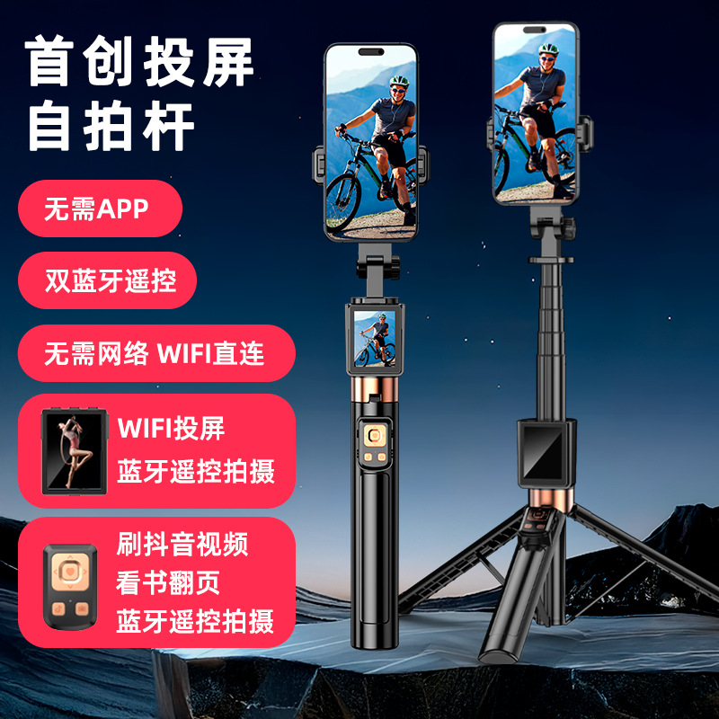 새로운 스크린 프로젝션 셀카봉, 휴대용 후면 카메라 라이브 방송 플로어 스탠딩 삼각대, 실외 휴대용 안정기