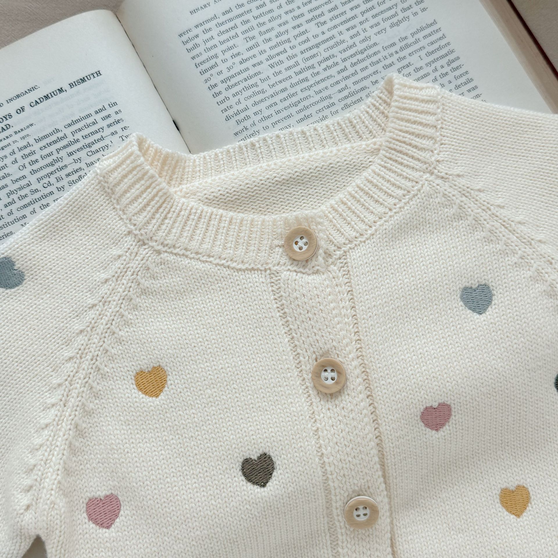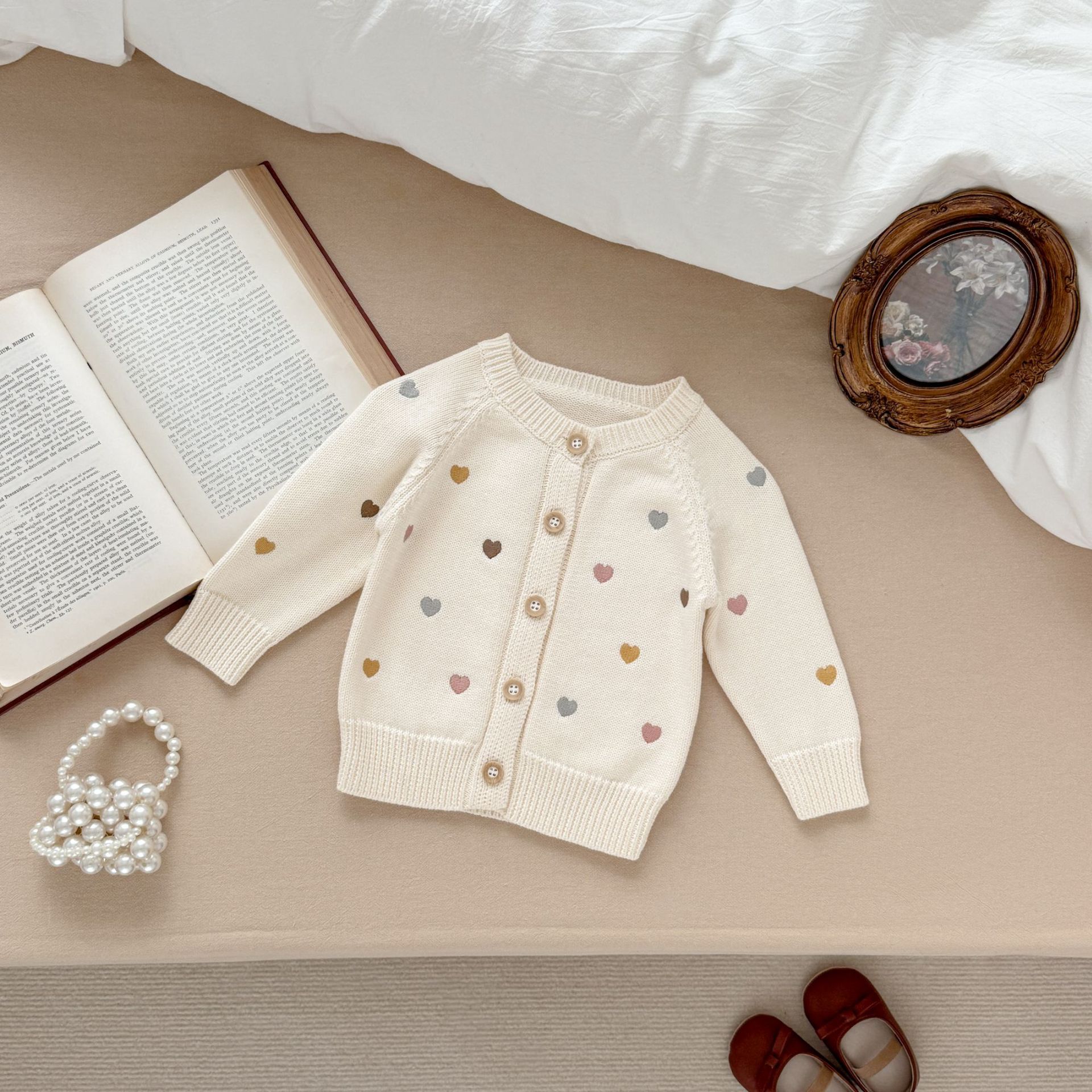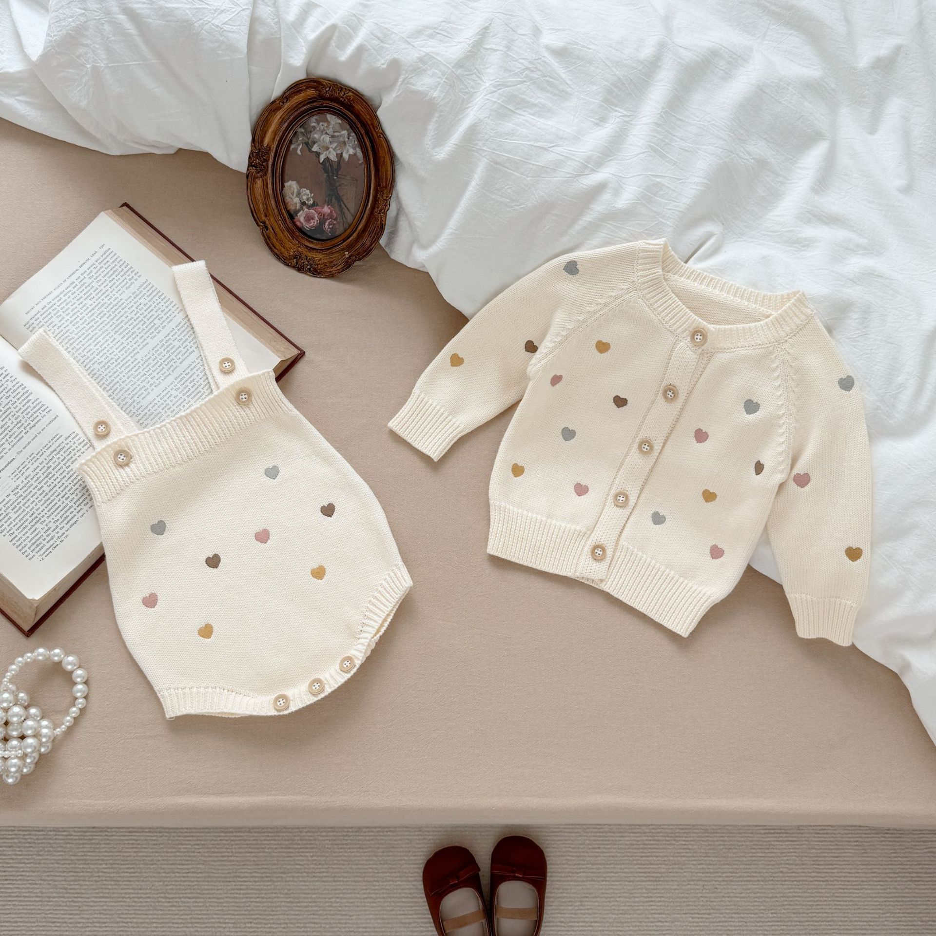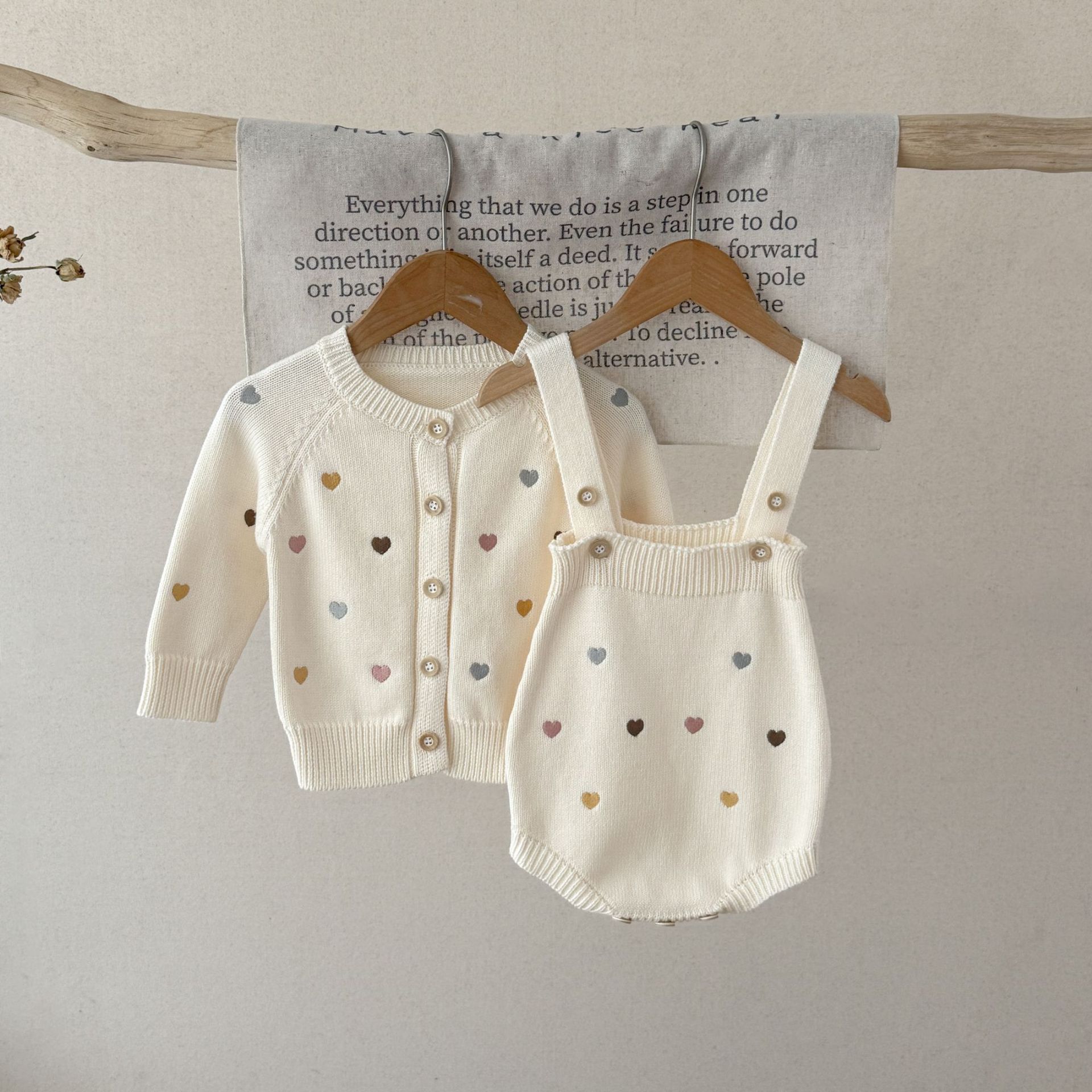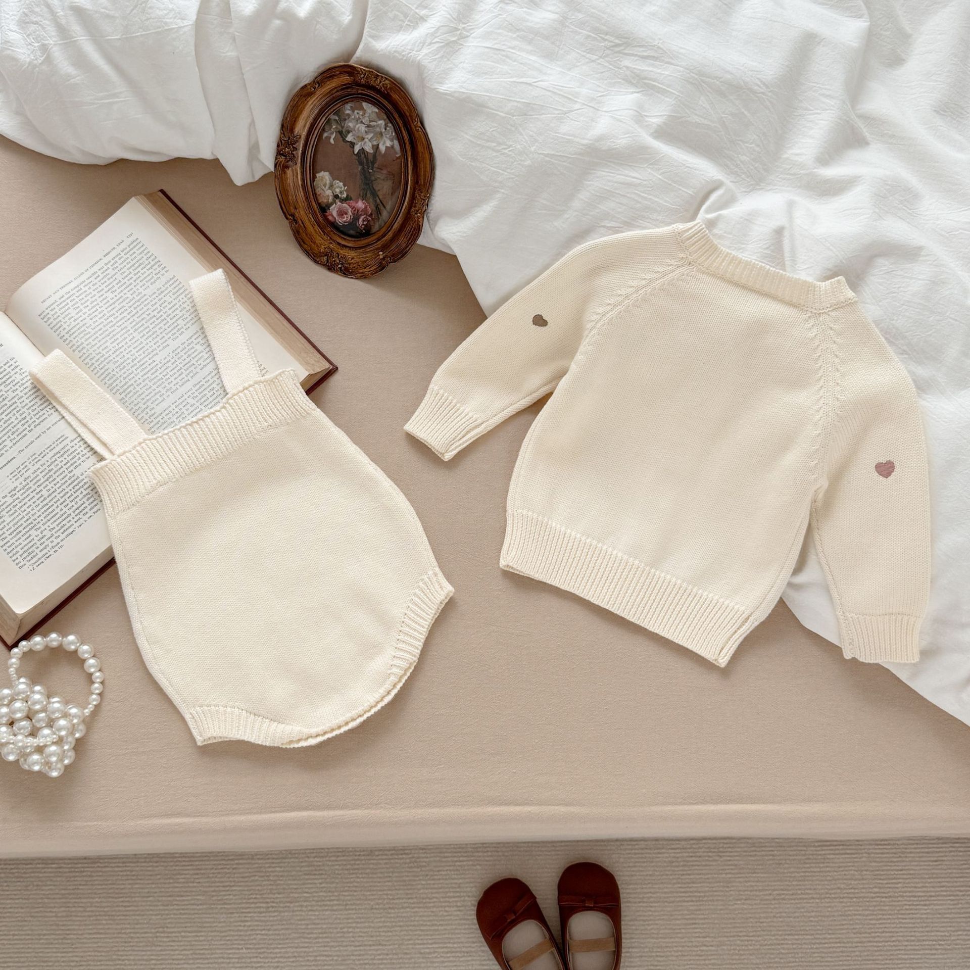 여아용 면 소재 아기 점프수트+가디건 세트, 봄가을용 자수+코트 투피스 세트, 순면 A급