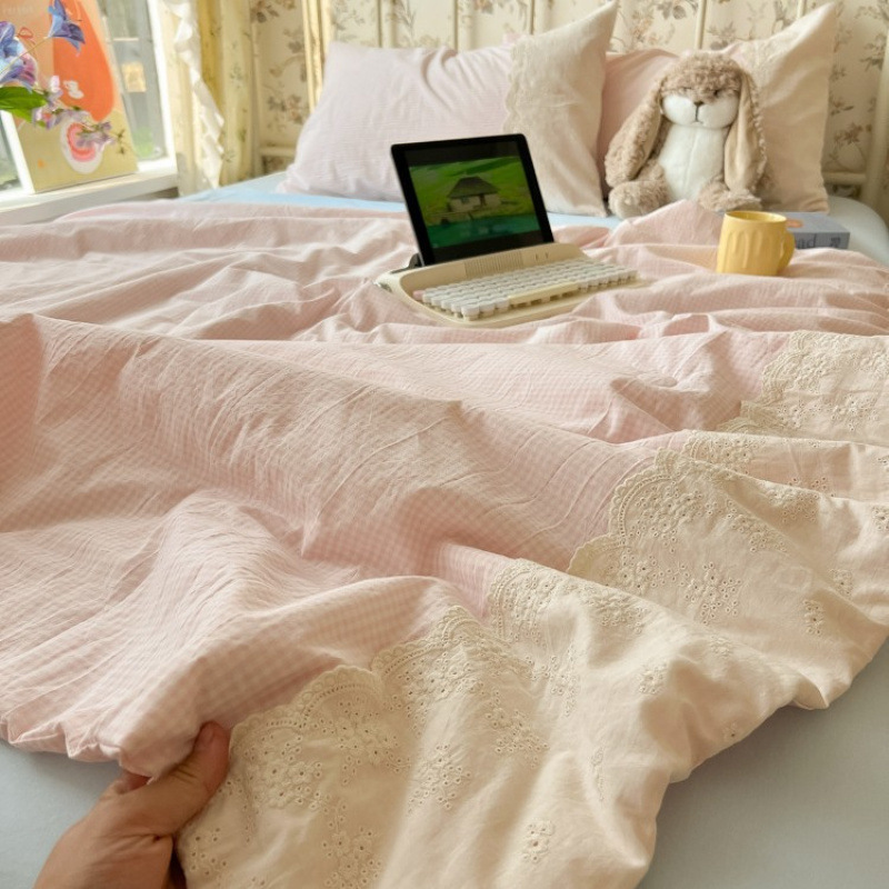 • 레이스 여름 퀼트 - 작은 핑크 체크