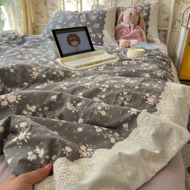 • 레이스 여름 퀼트 꽃무늬 토끼 그레이