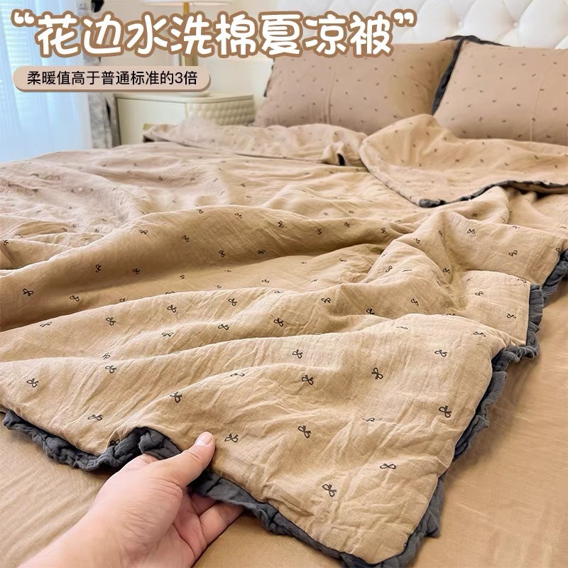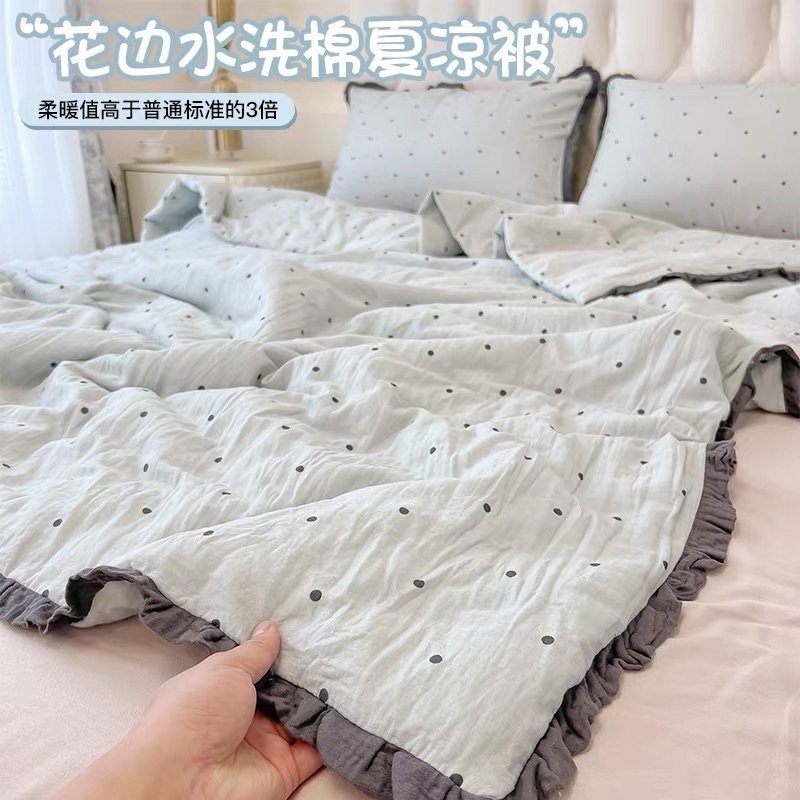 클래스 A 순면 여름 이불, 면 기계 세탁 가능한 에어컨 이불, 4피스 이불, 더블 봄, 가을 싱글 여름 얇은 이불스토어 가기