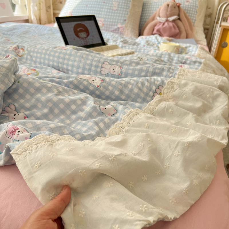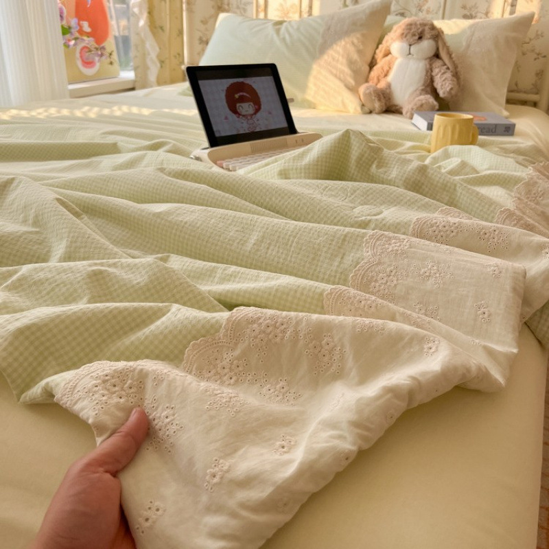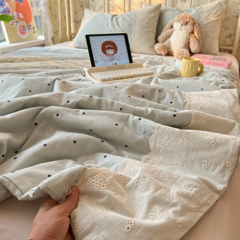 클래스 A 순면 여름 이불, 면 기계 세탁 가능한 에어컨 이불, 4피스 이불, 더블 봄, 가을 싱글 여름 얇은 이불