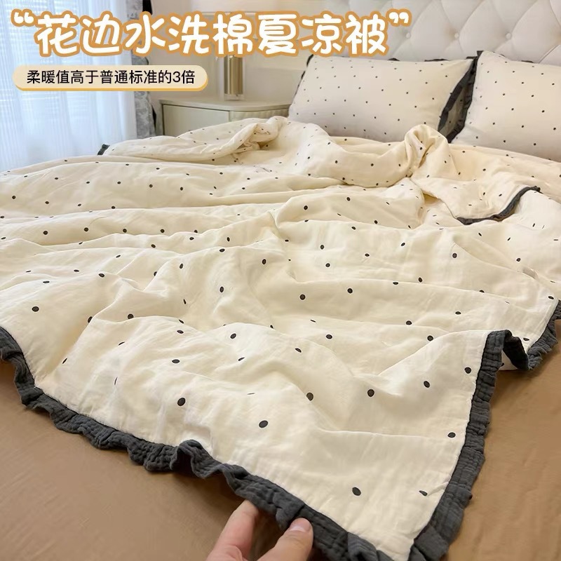 • 주름진 거즈 레이스 여름 퀼트 - 흰색 물방울 무늬
