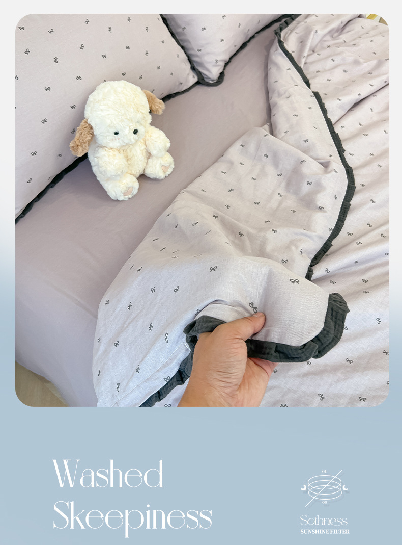 • 주름진 거즈 레이스 여름 퀼트 보우 퍼플