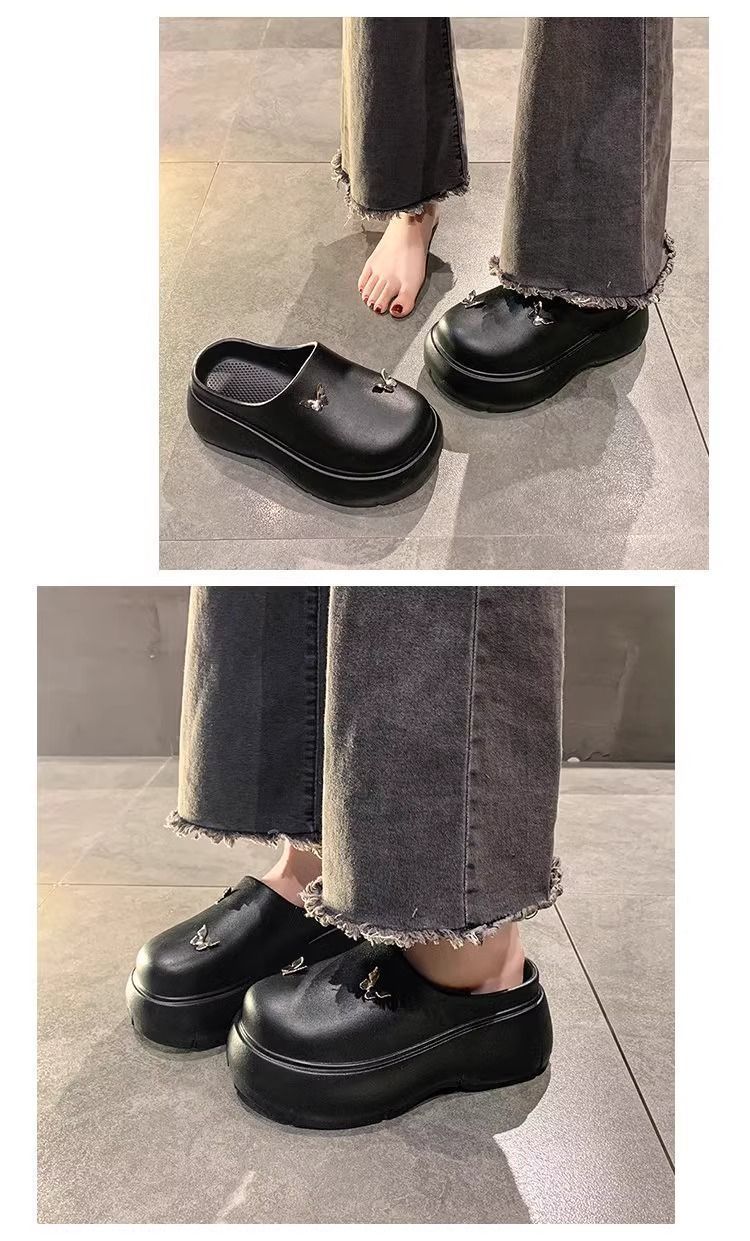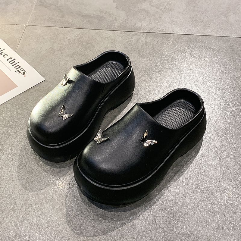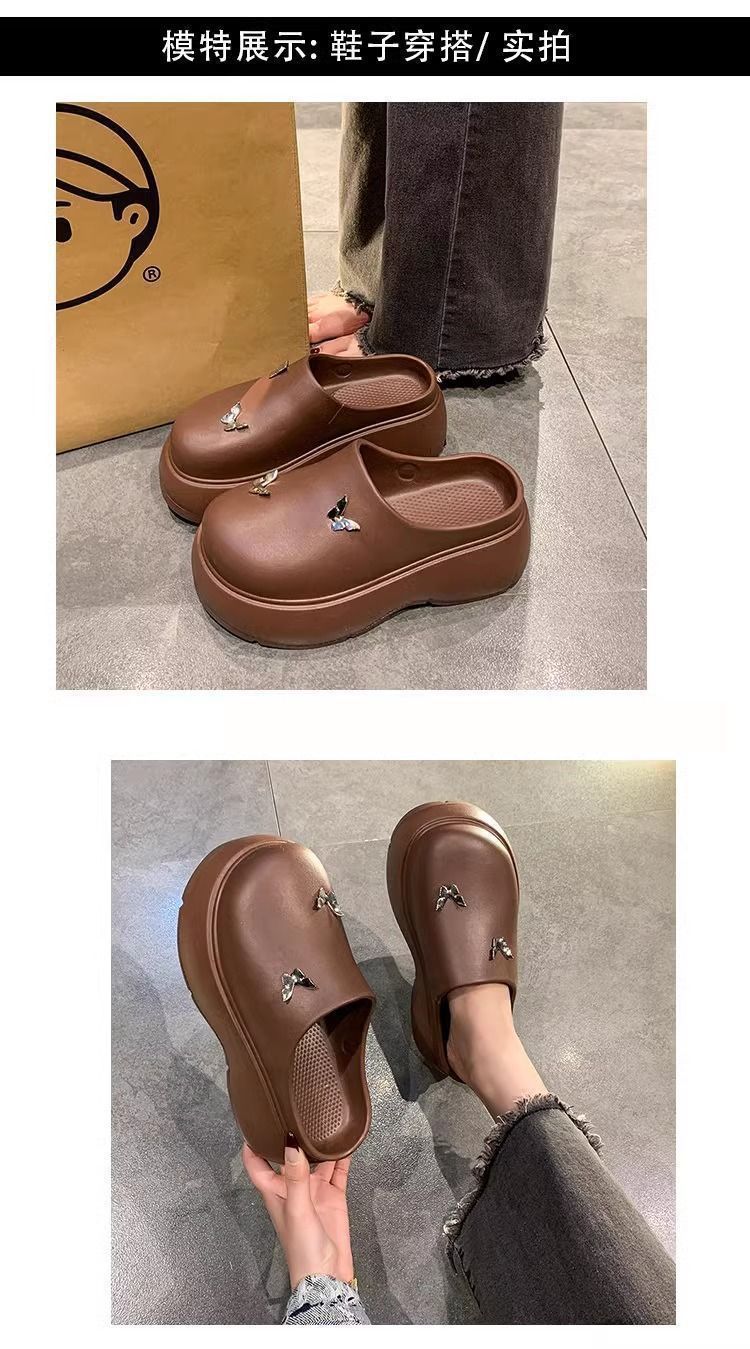 여성을위한 두꺼운 밑창 편안한 캐주얼 발가락 슬리퍼 2025 봄과 여름 여성을위한 새로운 귀여운 금속 나비 슬리퍼스토어 가기