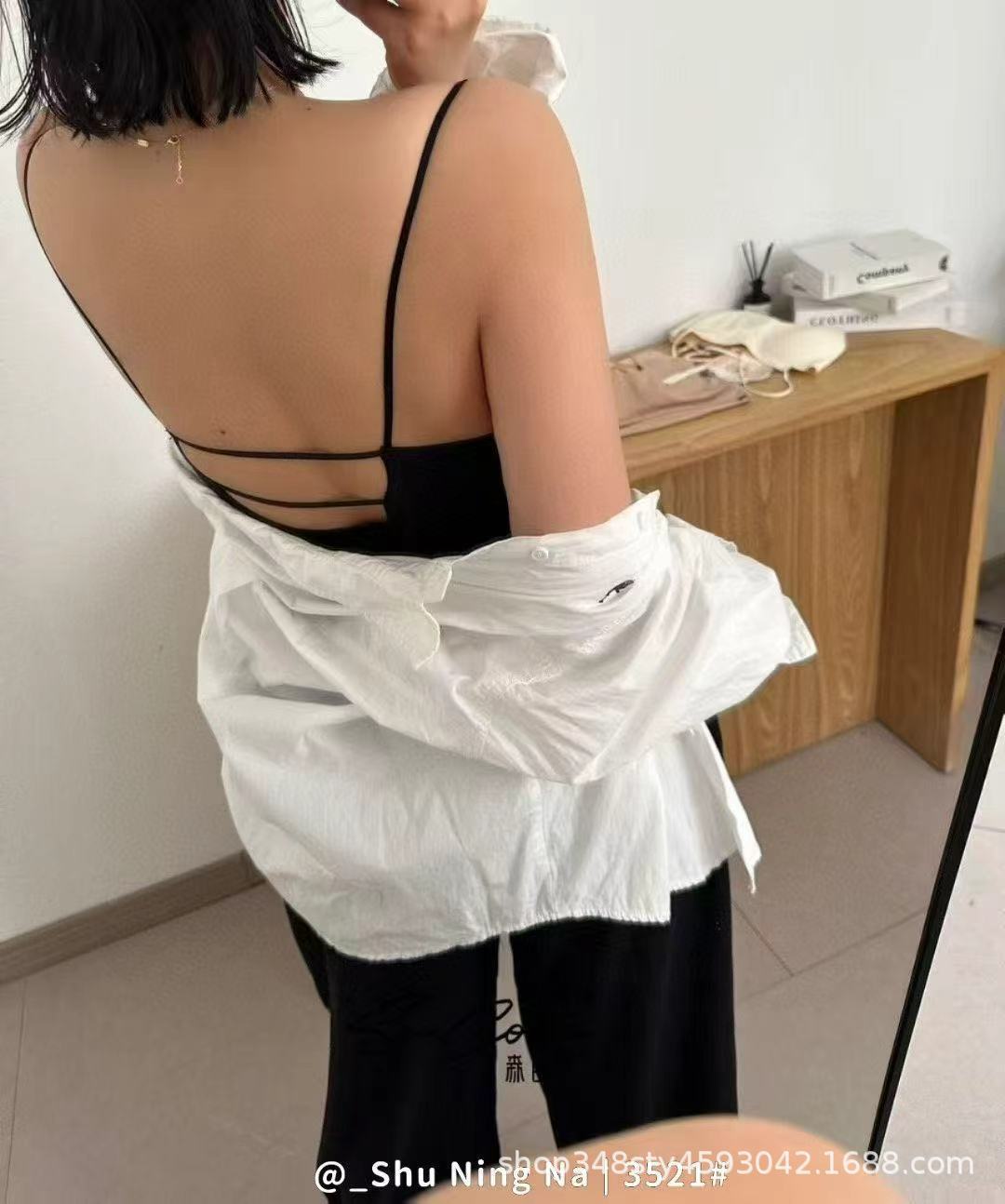 여성용 보이지 않는 서스펜더 베스트, 가슴 패드 포함, 심리스 아이스 실크 아름다운 등 노출 방지 라텍스 베이스 탑스토어 가기