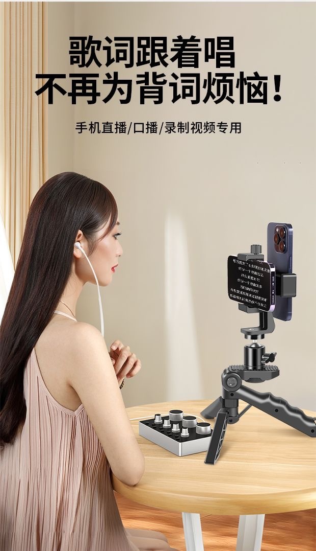 휴대폰 텔레프롬프터 스탠드, 양면 클립, 데스크탑 삼각대, 생방송, 비디오 촬영 및 자막 시청