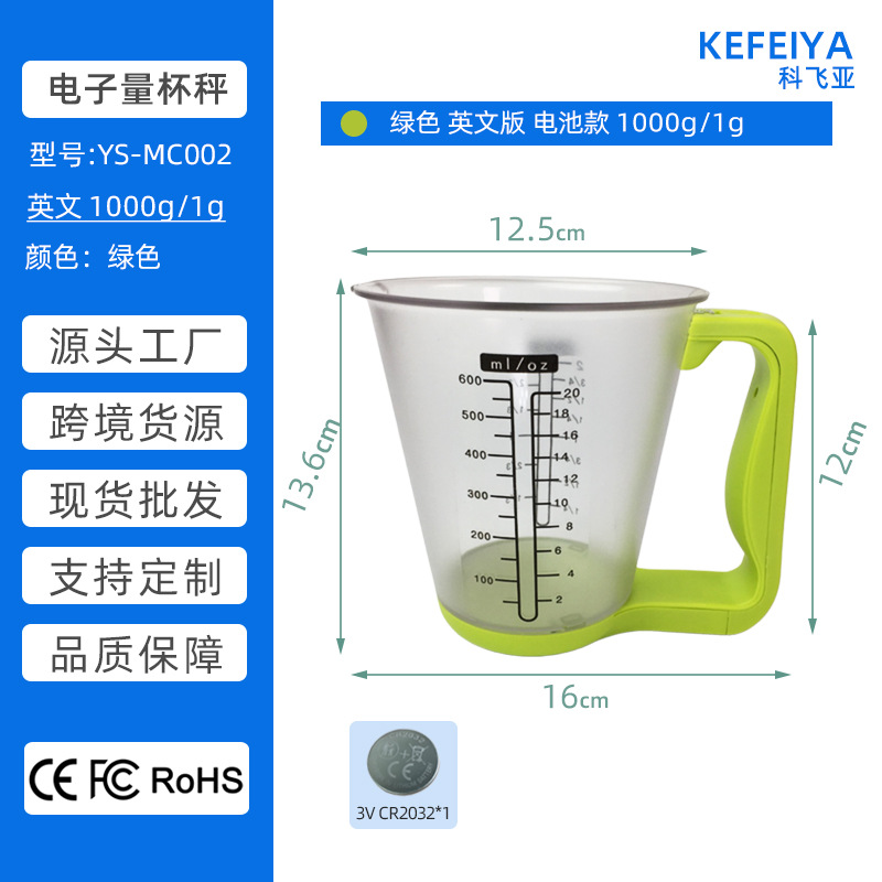 深圳科飞亚电子量杯秤,黑色、红色、绿色,1000g/1g高精度营养冲调秤, 婴儿辅食,果汁饮品,食品烘焙,养生茶饮,五谷杂粮,药材茶叶,液体奶茶饮品,烘焙工具,水杯秤,咖啡秤,工厂批发,支持定制