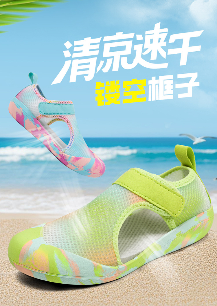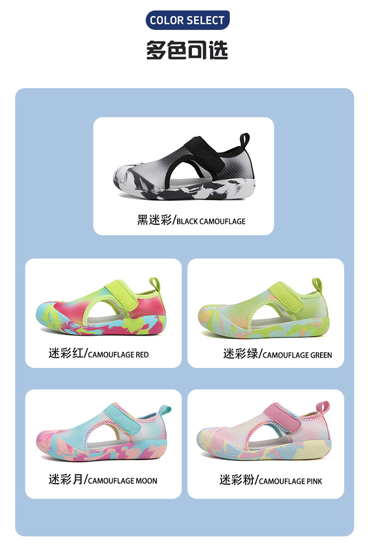 어린이 강 신발 2025 여름 새로운 Baotou 메쉬 샌들 통기성 메쉬 신발 부드러운 바닥 와타리 신발 스포츠 샌들