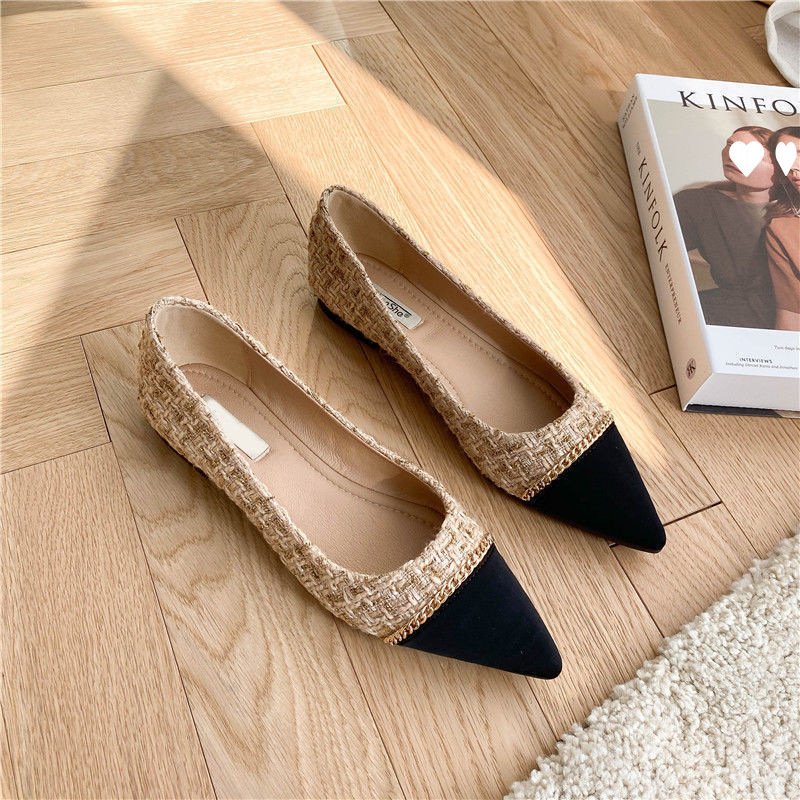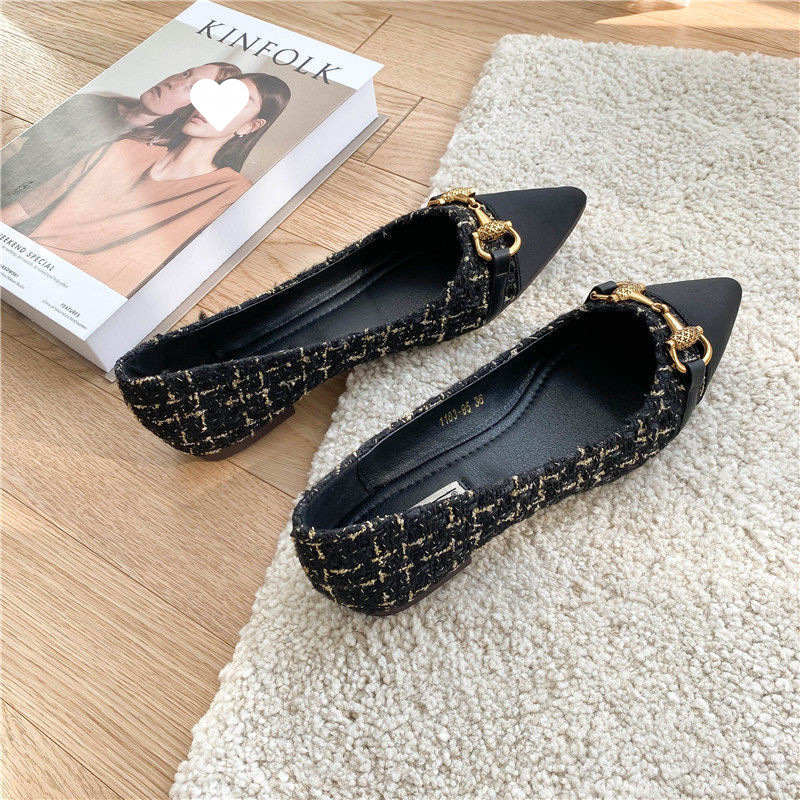 여성을 위한 뾰족한 신발 2025 봄과 가을 새로운 스타일 작은 향기 스타일 가벼운 숨 기질 다용도 컬러 매칭 금속 버클 부드러운 밑창 플랫 슈즈스토어 가기
