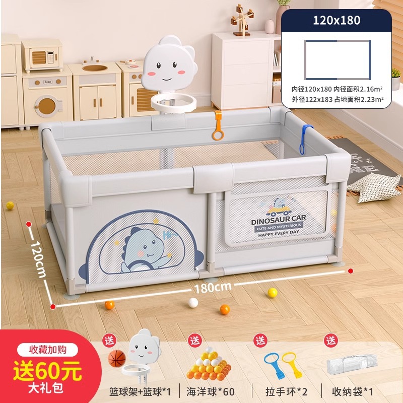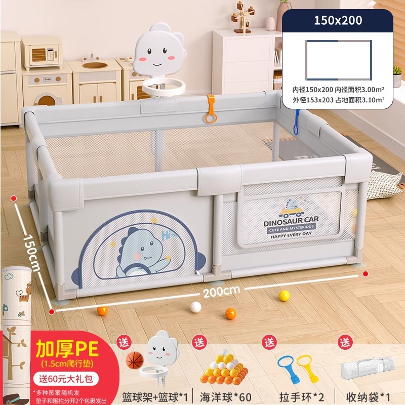 • [2CM 두께의 접이식 XPE 매트 + 180*200 리세미 공룡 울타리] + 농구대 + 대형