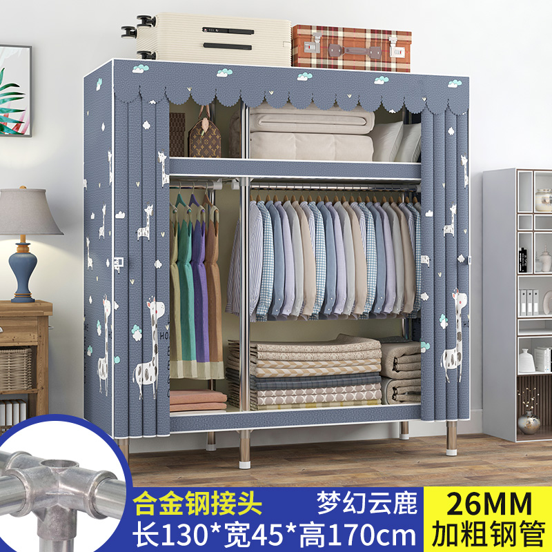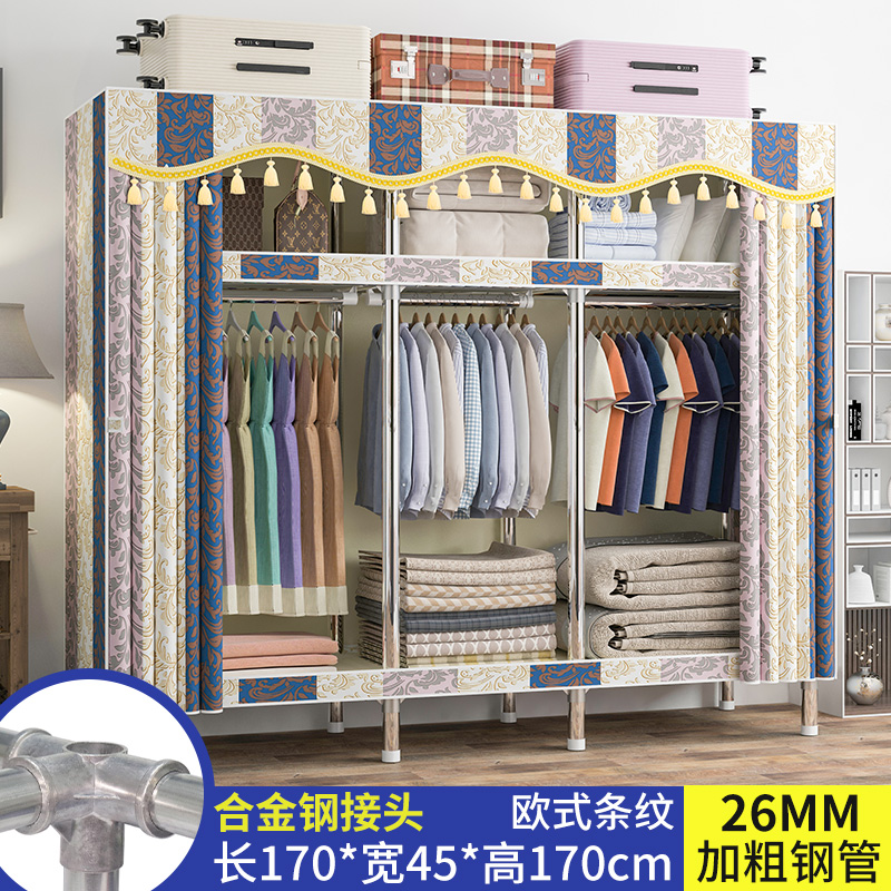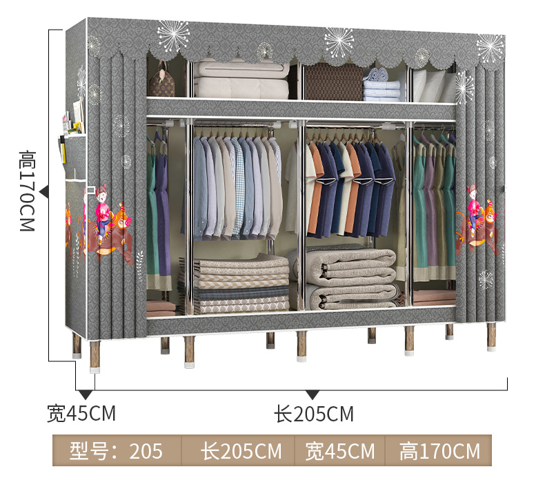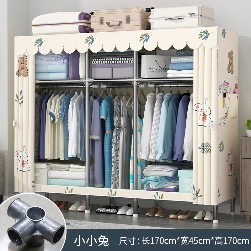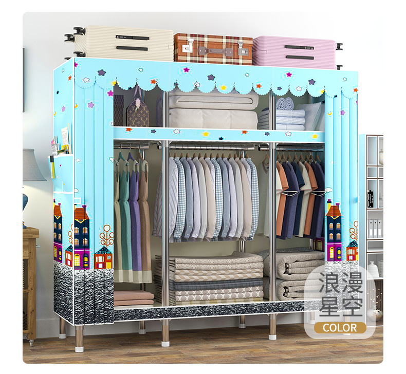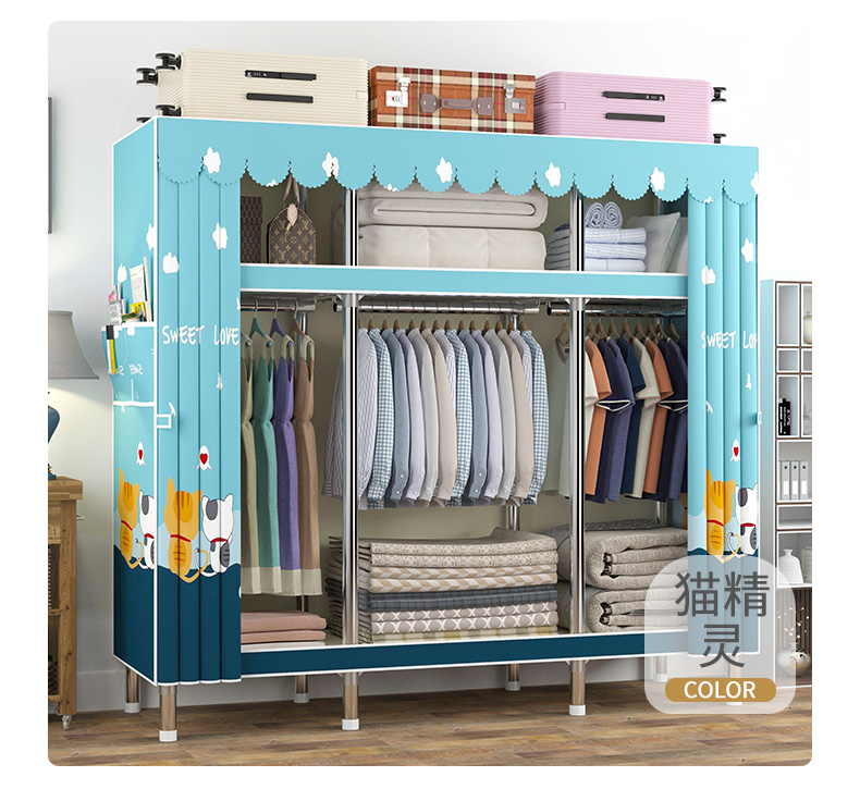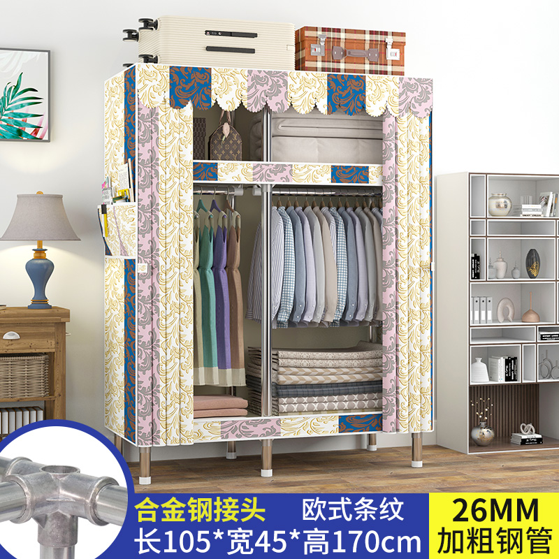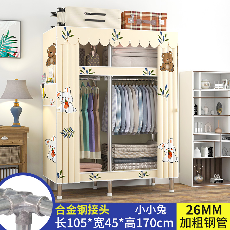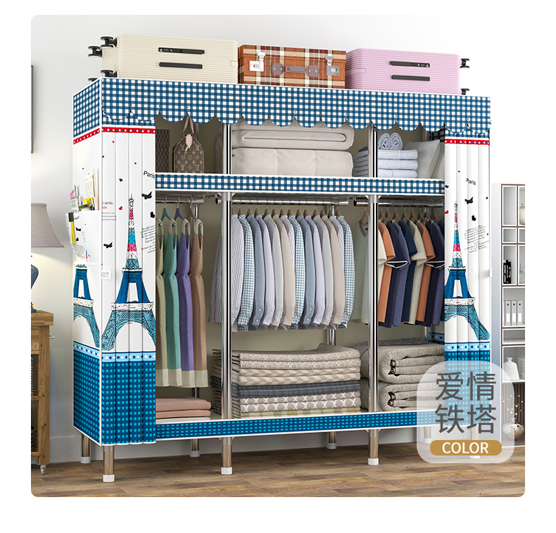옷장 강철 프레임 구조 새로운 2025 인기 임대 옷장 홈 침실 간단한 조립 기숙사 보관 캐비닛