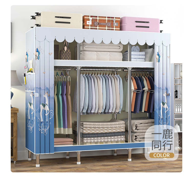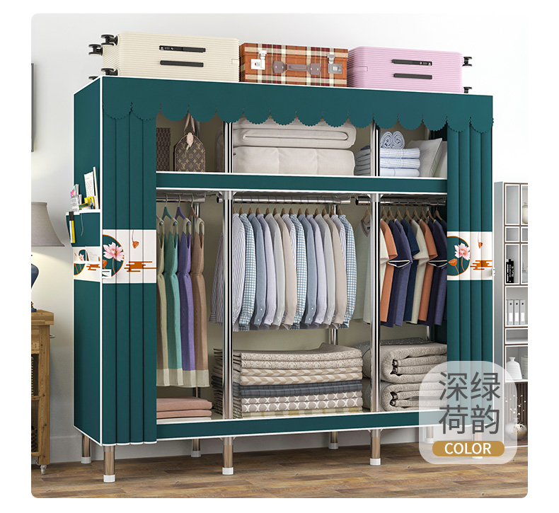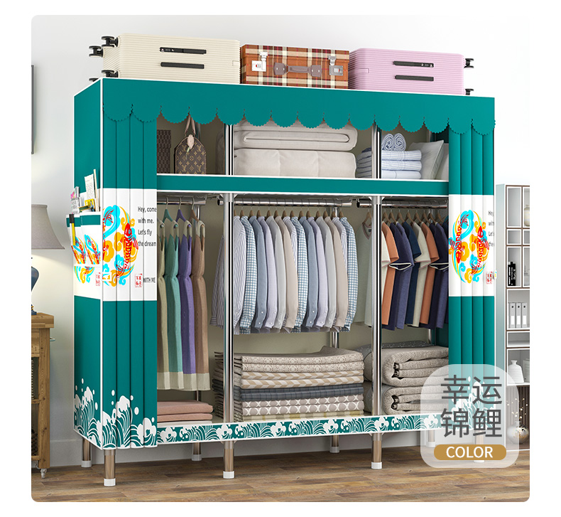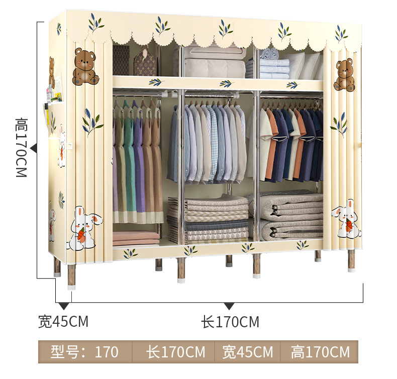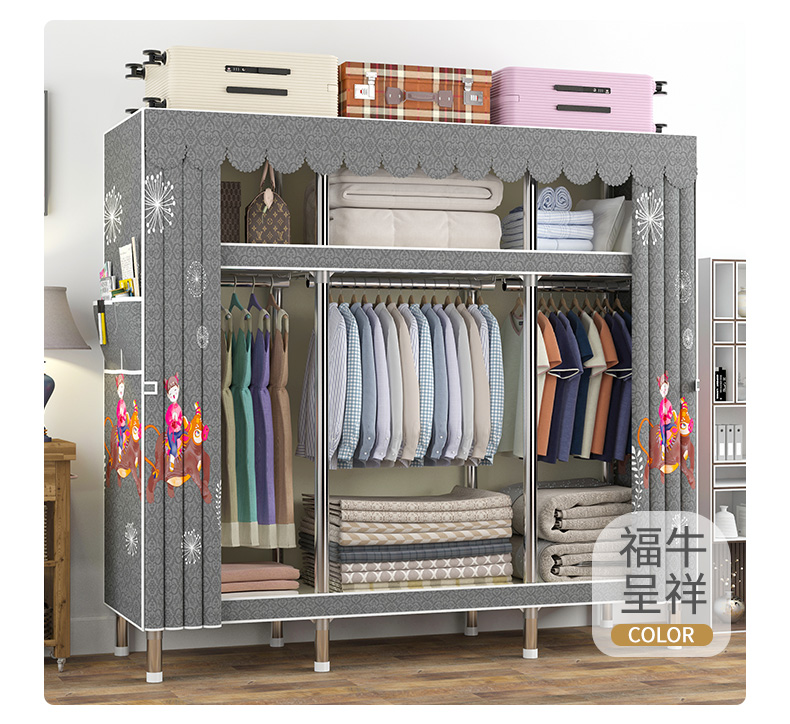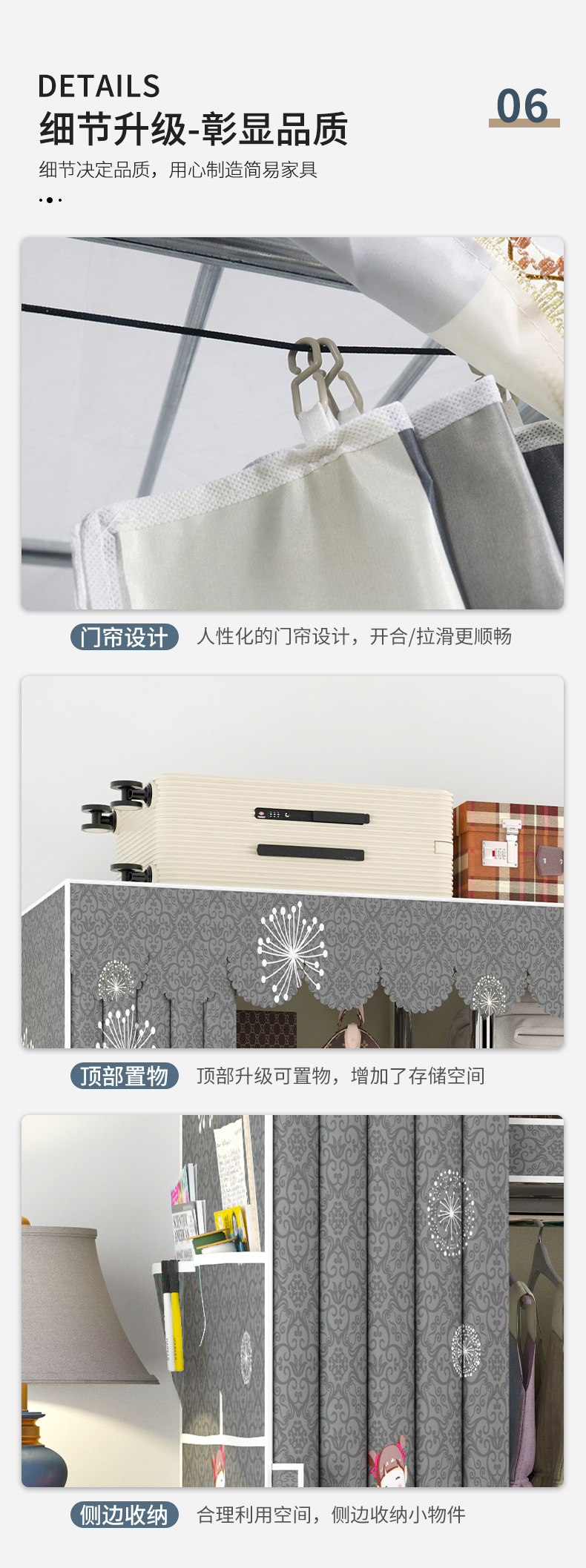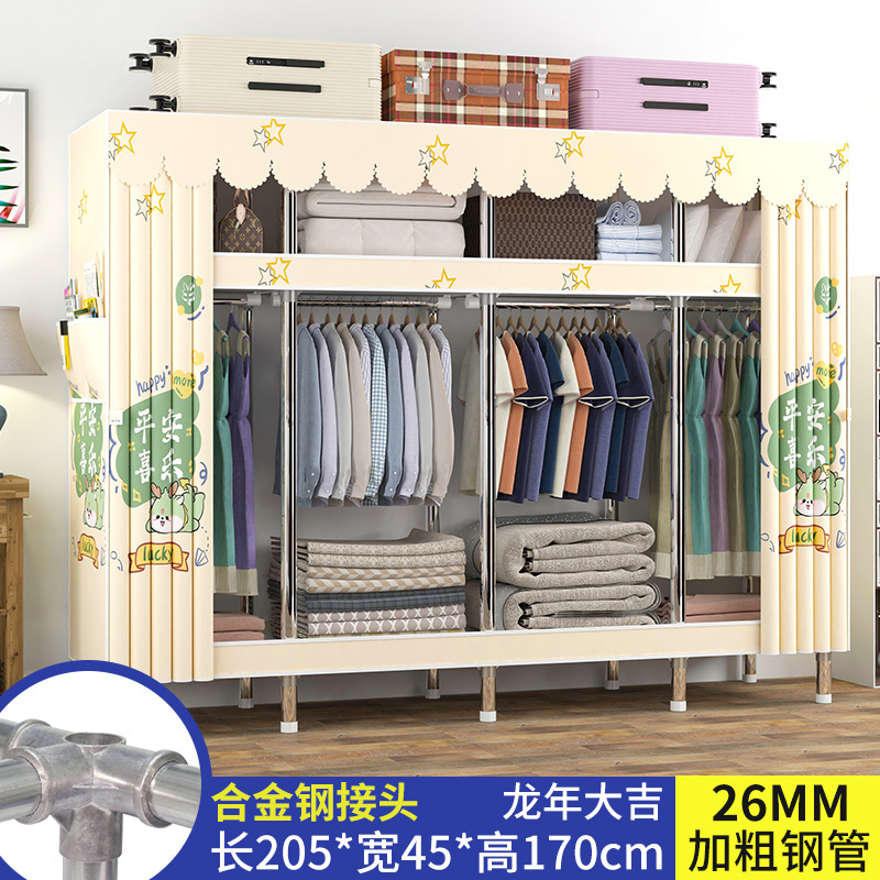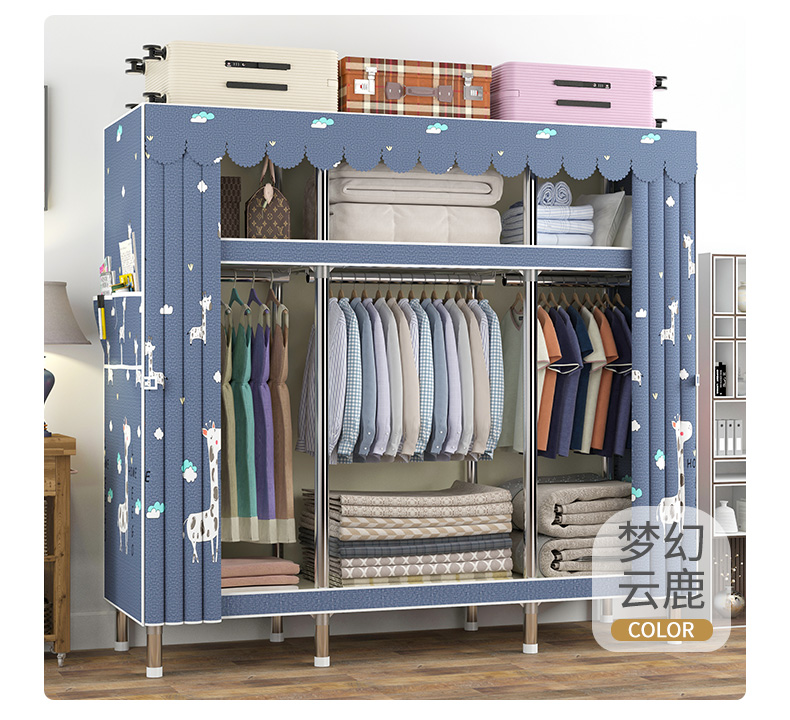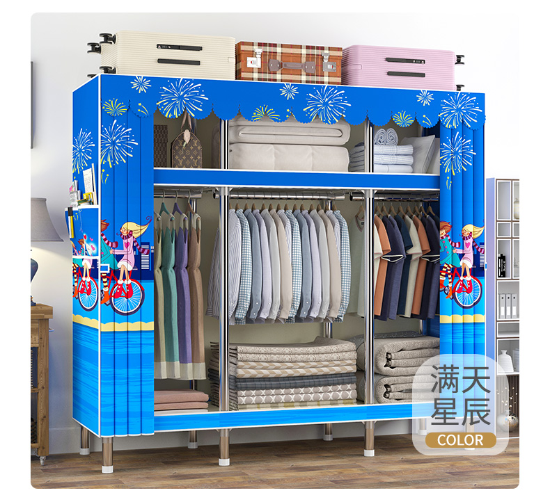 옷장 강철 프레임 구조 새로운 2025 인기 임대 옷장 홈 침실 간단한 조립 기숙사 보관 캐비닛
