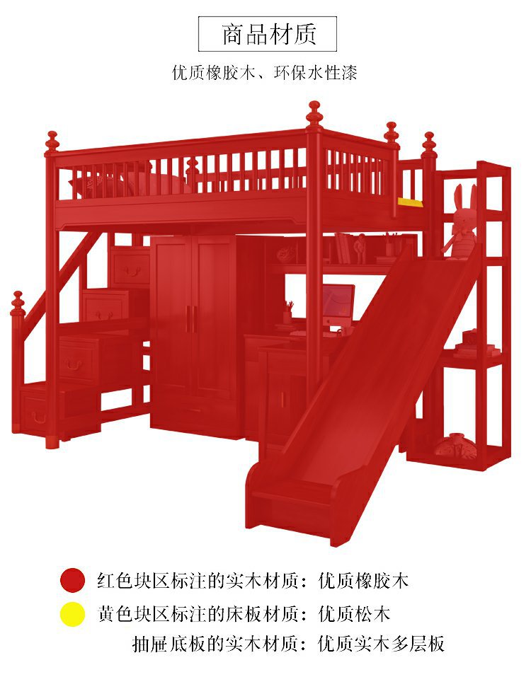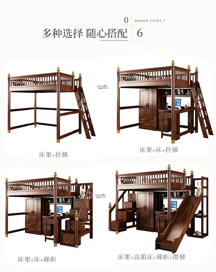 • 침대 프레임 + 옷장 + 책상 + 사다리 캐비닛 + 슬라이드