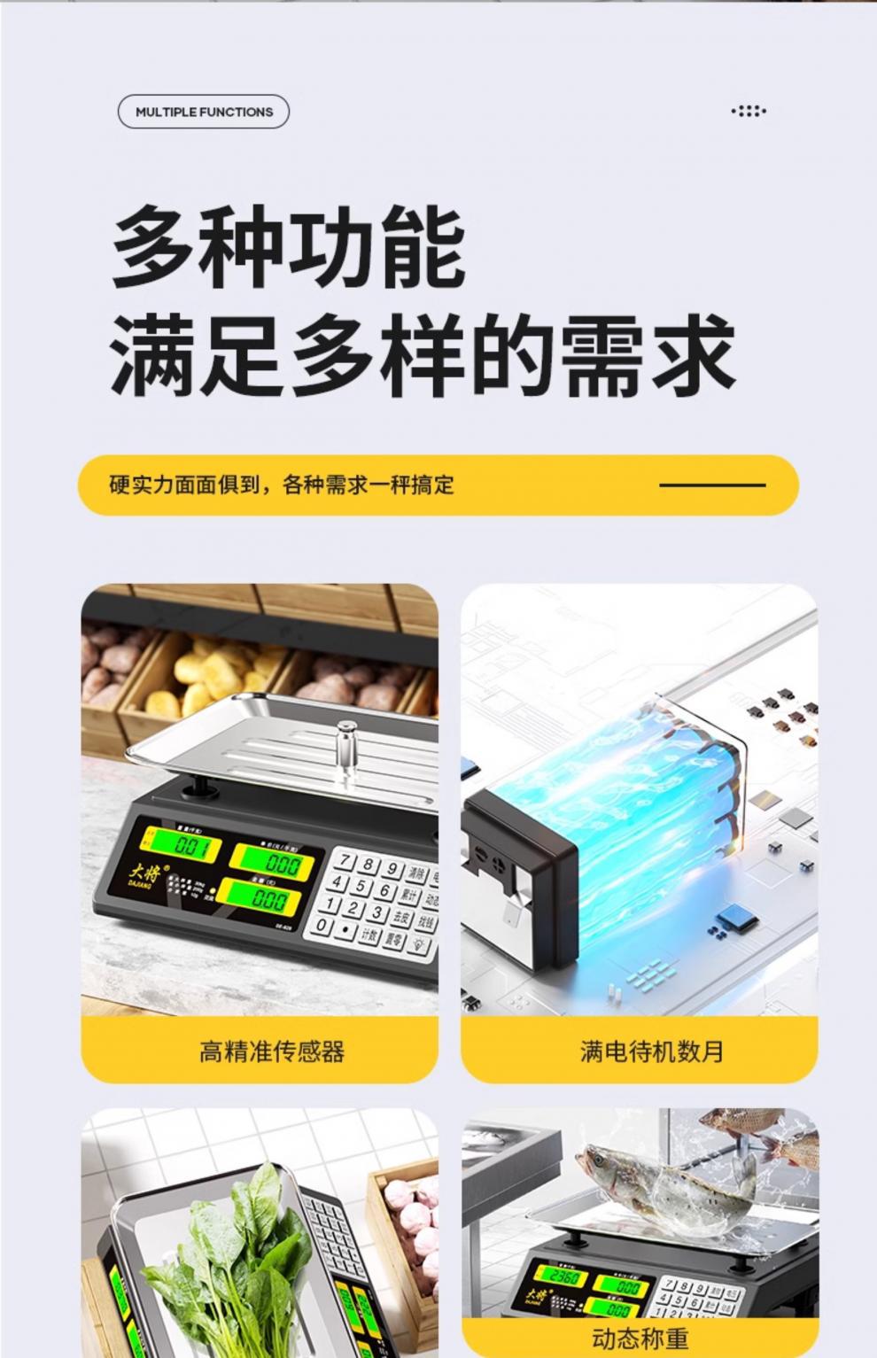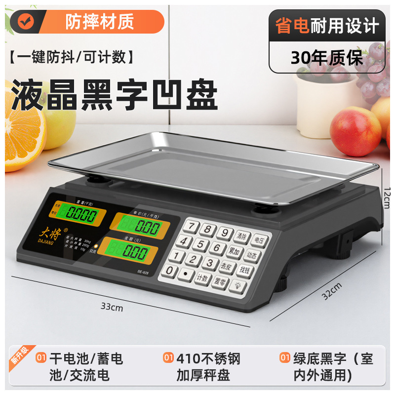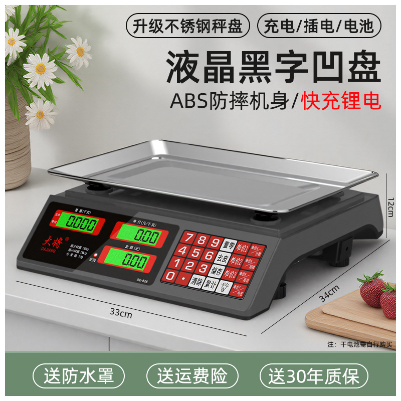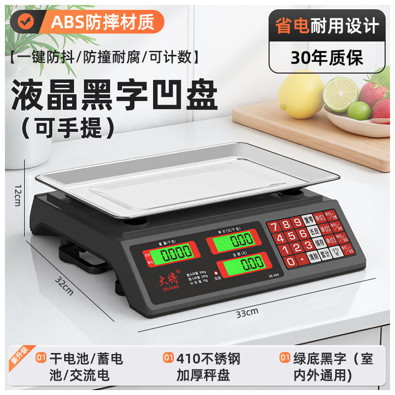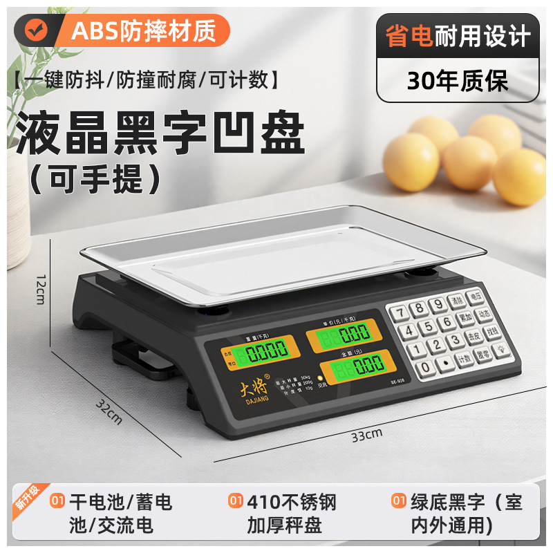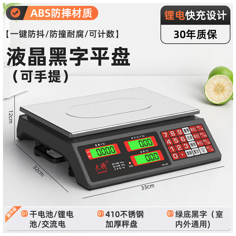 • 새로운 30kg 배터리 내구성(3회 충전식) 검정색 문자 평판 계산