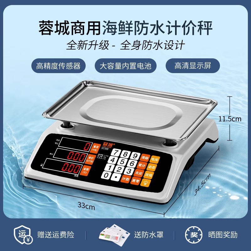 • Rongcheng 해산물 방수 저울 [휴대용 LCD 대형 스크린 오목 플레이트]