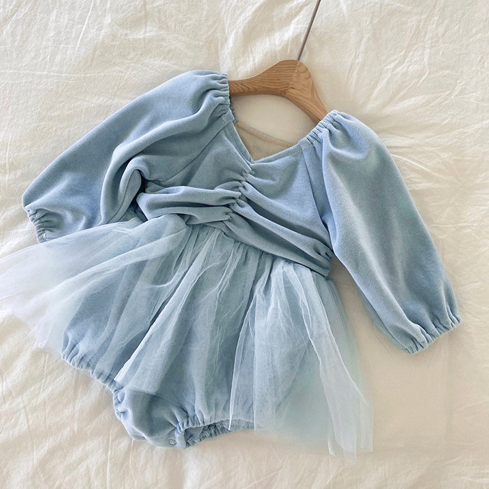 봄과 가을 아동 의류 하이 엔드 벨벳 메쉬 스커트 아기 소녀를위한 아동복 파티 생일 점프 슈트 거즈 스커트