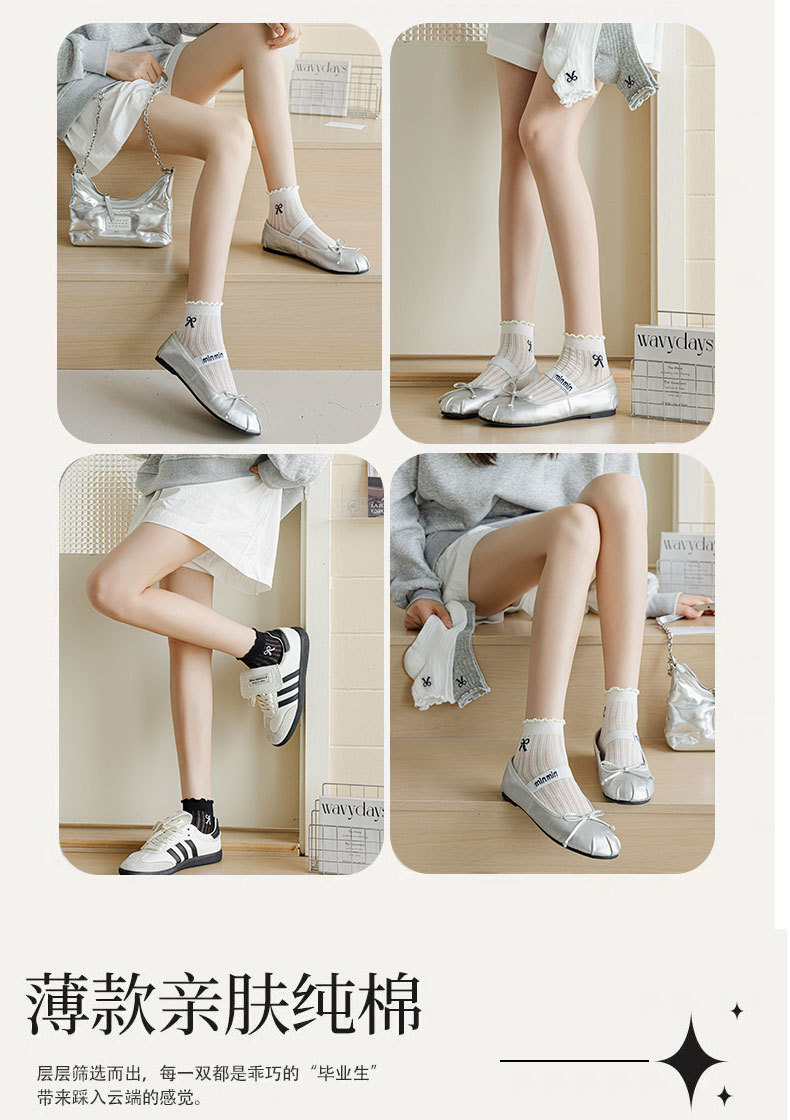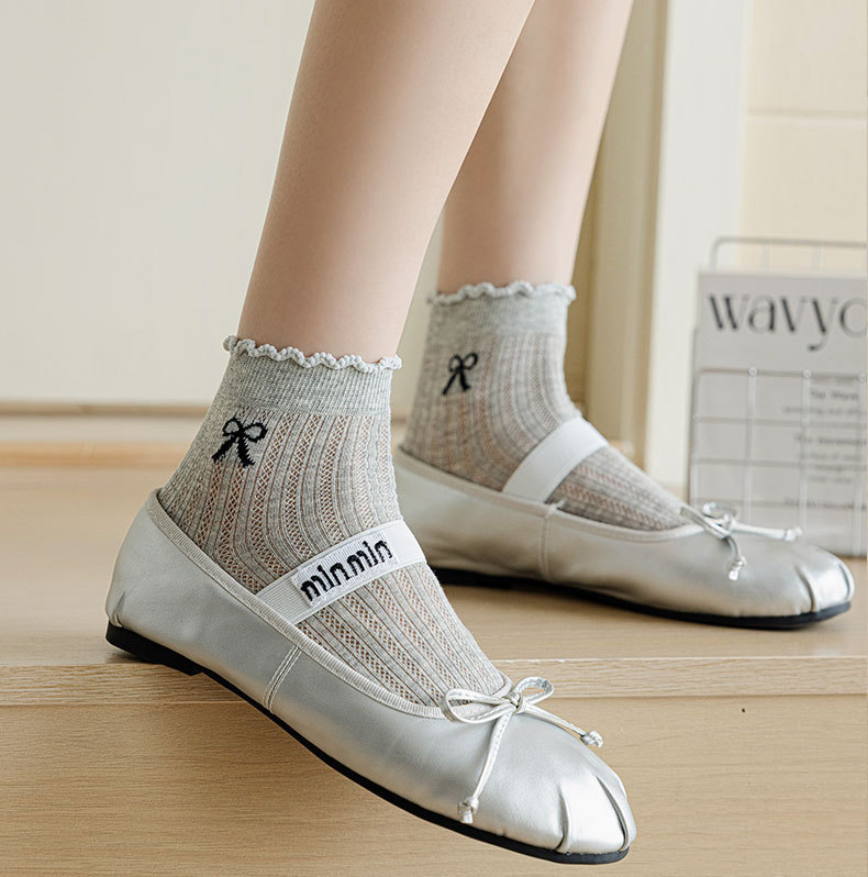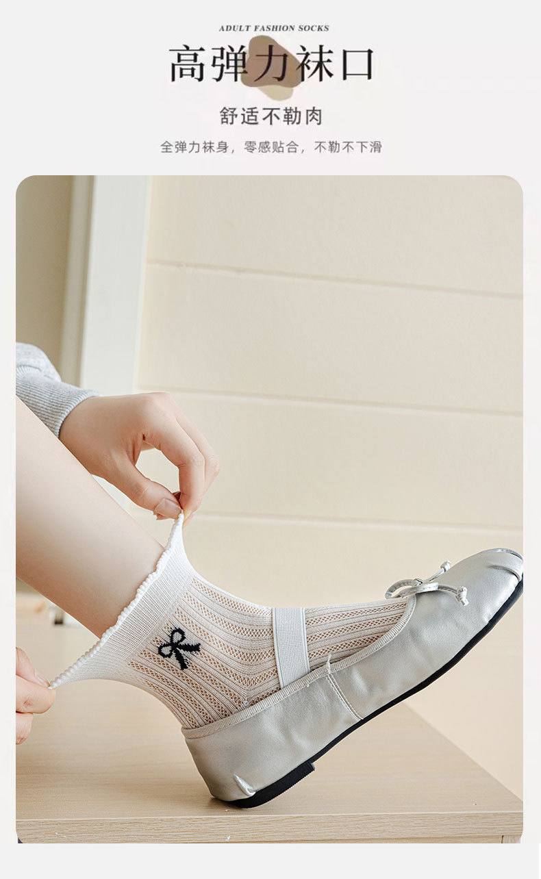 여성용 양말 여름 얇은 종아리 중간 양말 메쉬 중공 통기성 양말 발레 스타일 크림 일본 여성 양말 제조 업체스토어 가기