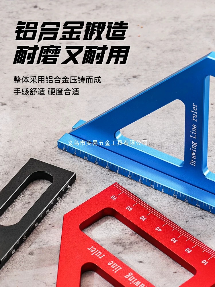 다기능 삼각형 눈금자 목공 특수 도구 직각 눈금자 90도 45도 고정밀 알루미늄 합금 스크라이빙 눈금자