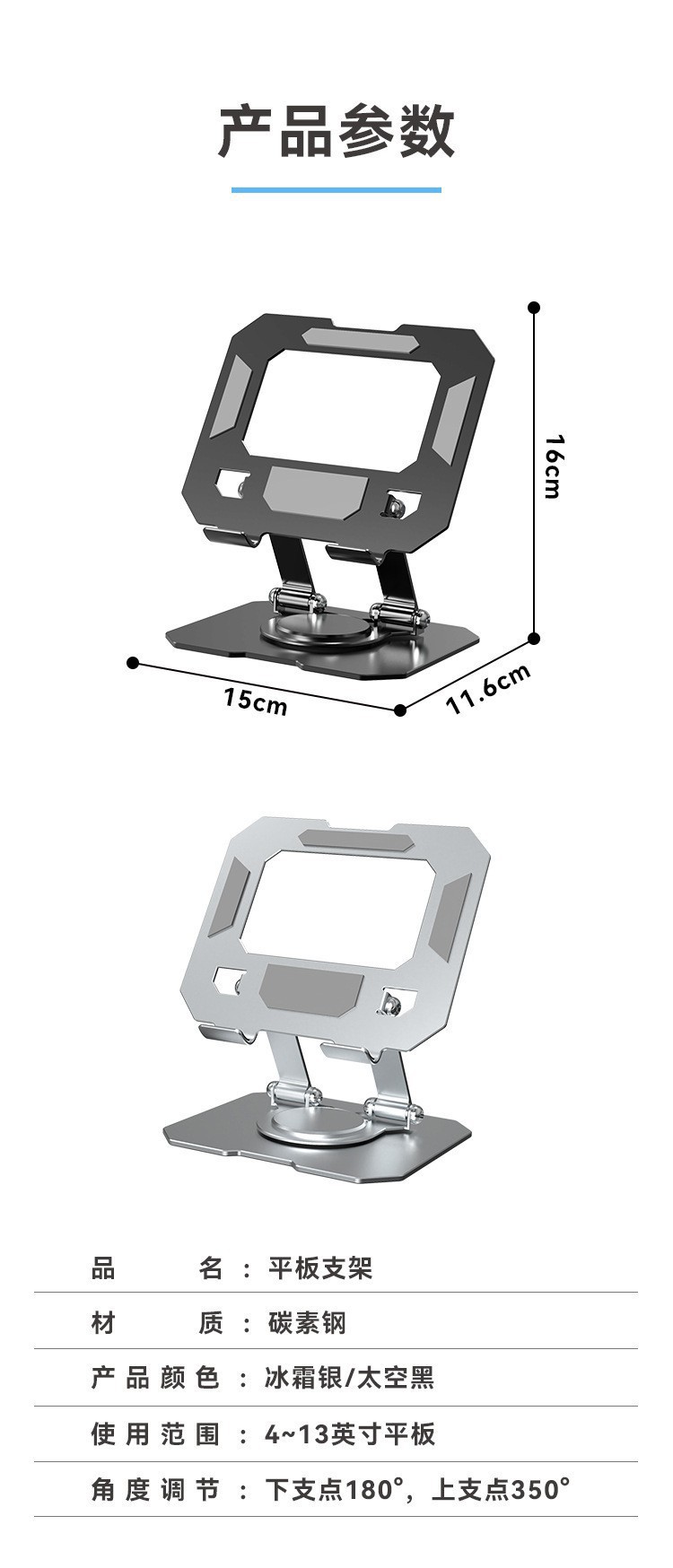 • [Haoyue Silver] 탄소강 금속 프레임*은 들어 올리거나 접을 수 있습니다. 평면 패널용 범용