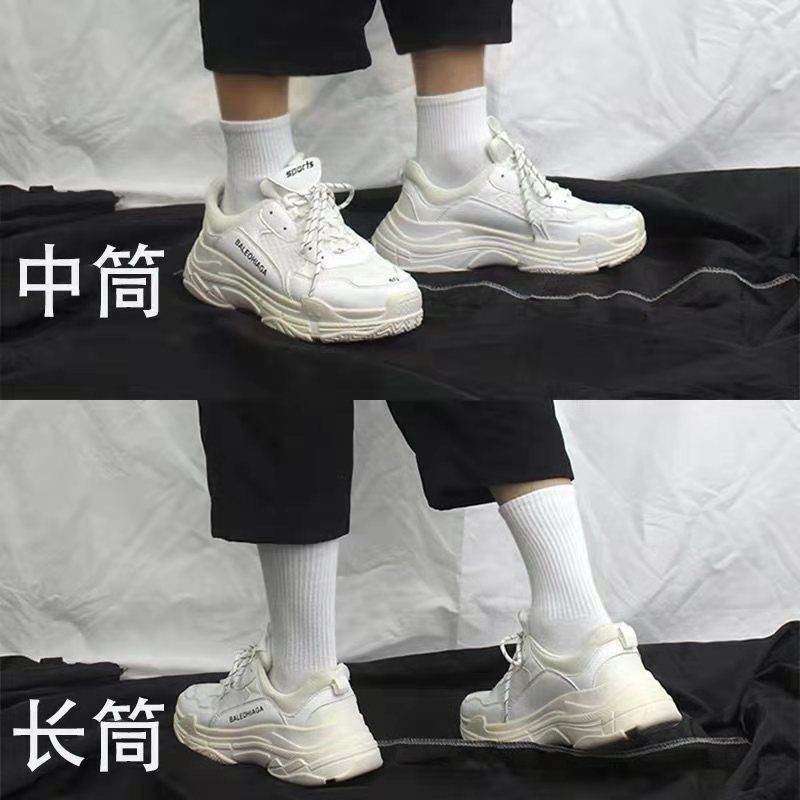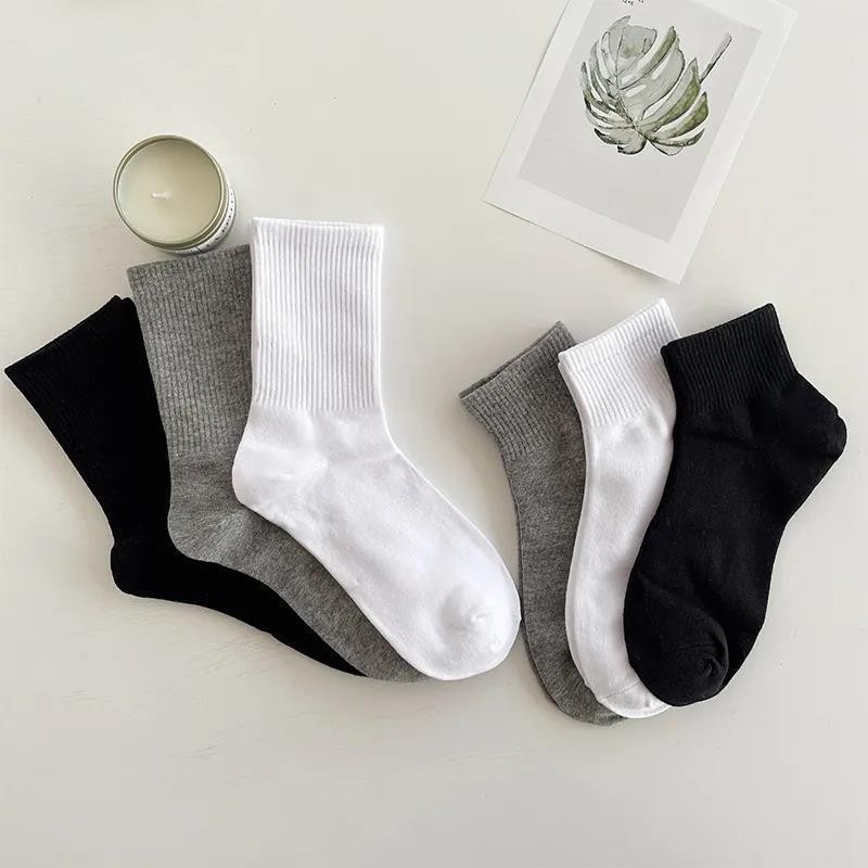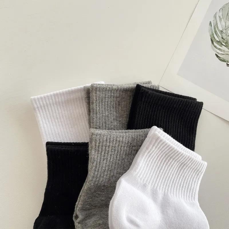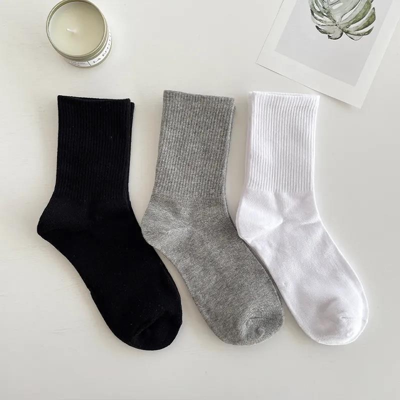 한국 동대문 청소년 심플 솔리드 컬러 통기성 세로 스트립 Yang Mi 같은 기본 스타일 컬링 미드 튜브 양말 여성용