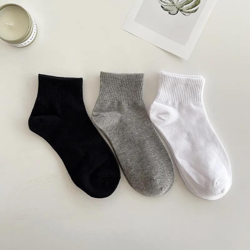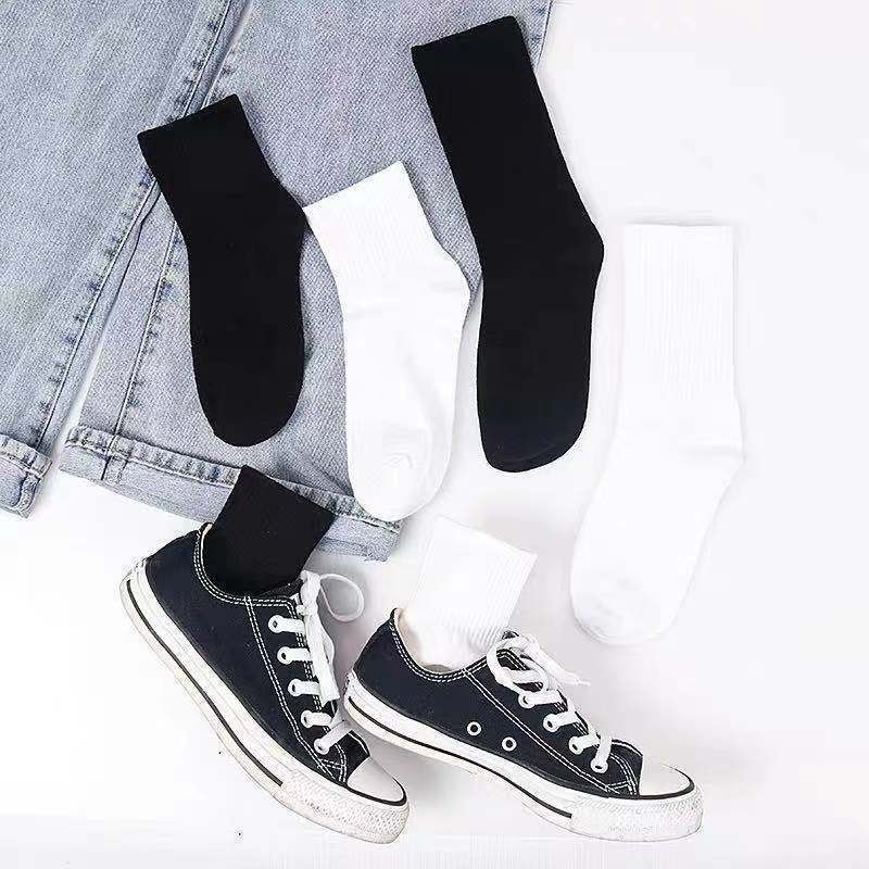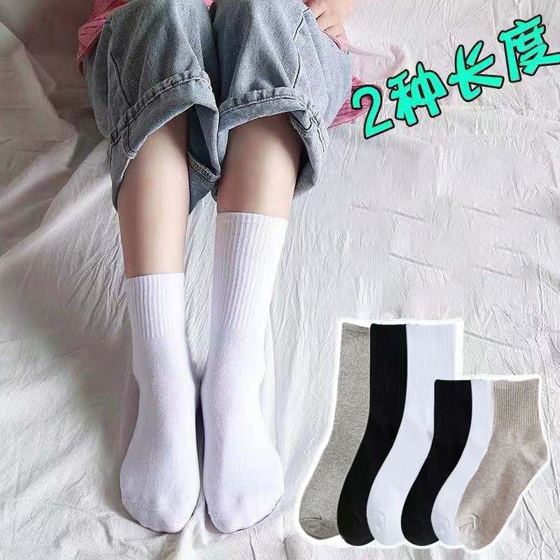 한국 동대문 청소년 심플 솔리드 컬러 통기성 세로 스트립 Yang Mi 같은 기본 스타일 컬링 미드 튜브 양말 여성용스토어 가기