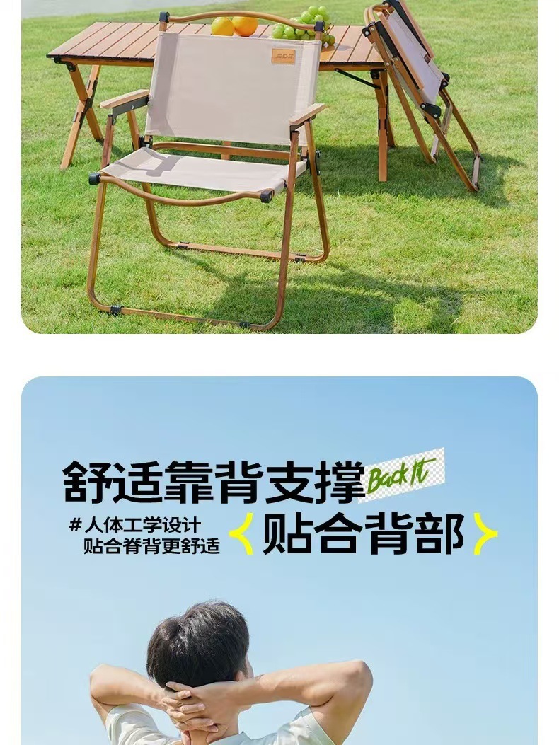 • 테이블과 의자 패키지 - [클래식 강화 모델 - 카키색 2개] + [중형 - 원목 계란말이 테이블 1]