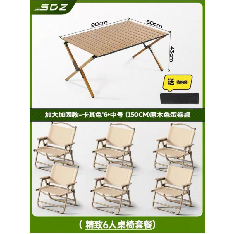 • 테이블과 의자 패키지 - [확대 및 강화 버전 - 카키색 6개] + [특대형 - 원목 계란말이 테이블 1]