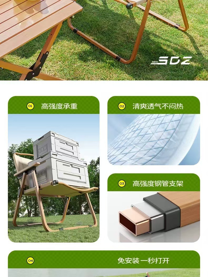 • 테이블과 의자 패키지 - [확대 및 강화 버전 - 카키색 4개] + [대형 - 원목 계란말이 테이블 1]
