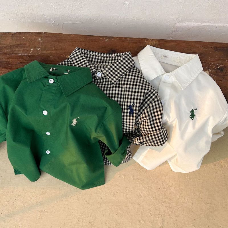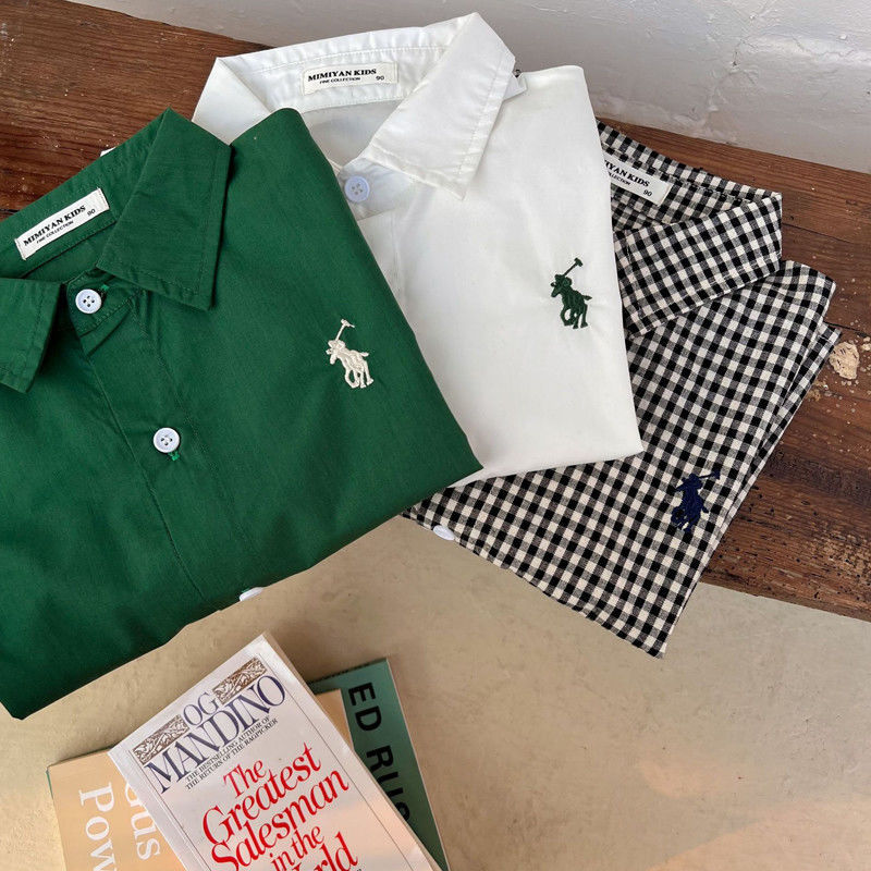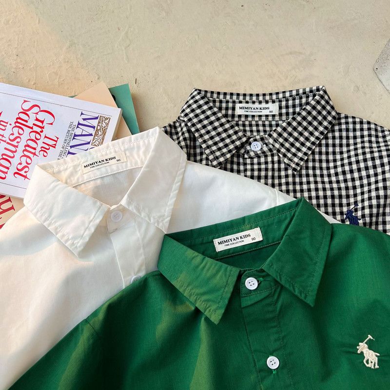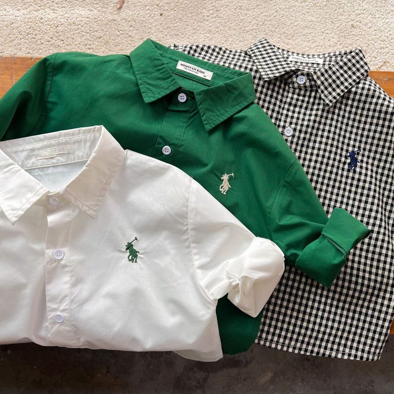 아동 셔츠 2025 봄 신작 소년 한국어 버전 수 놓은 녹색 면 셔츠 남성과 여성 캐주얼 셔츠 재킷스토어 가기