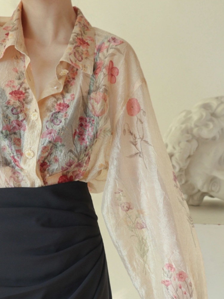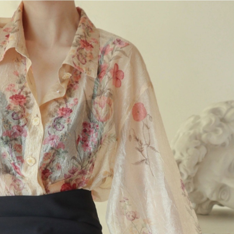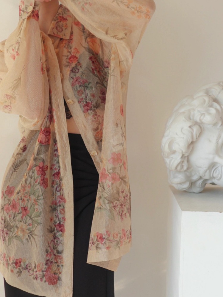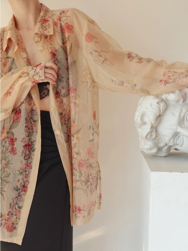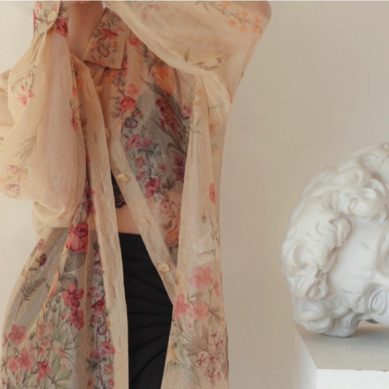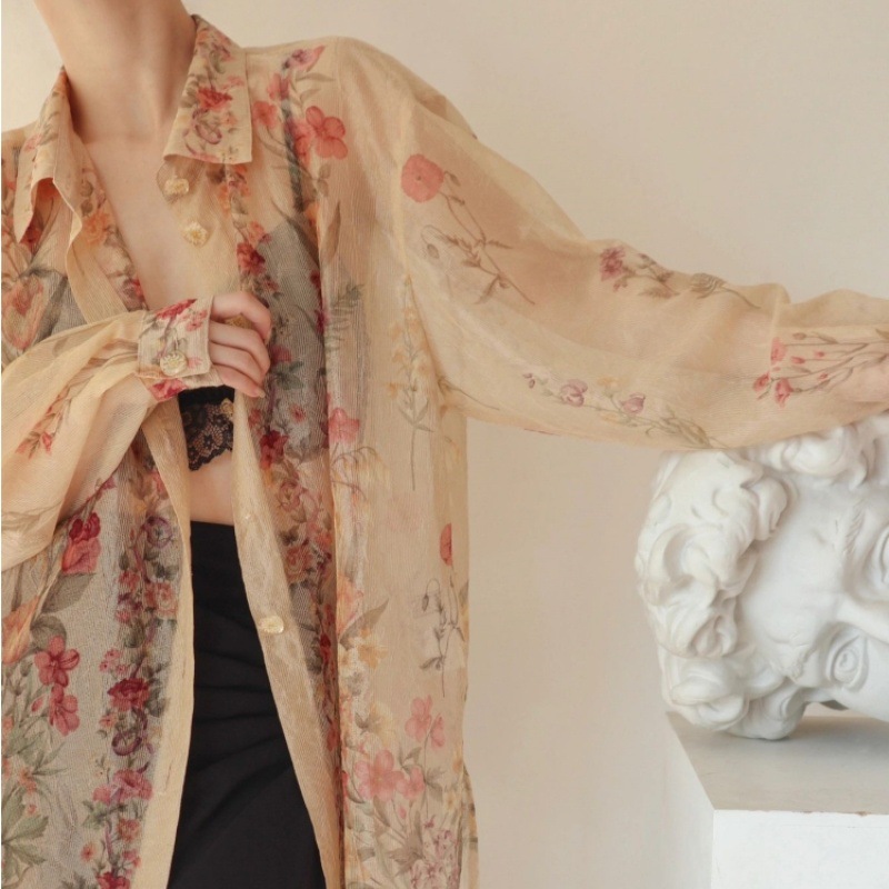 올해 여성을 위한 인기 자외선 차단 꽃무늬 쉬폰 셔츠 2025 봄 여름 새로운 스타일 프렌치 하이엔드 스타일이 매우 아름답습니다.스토어 가기
