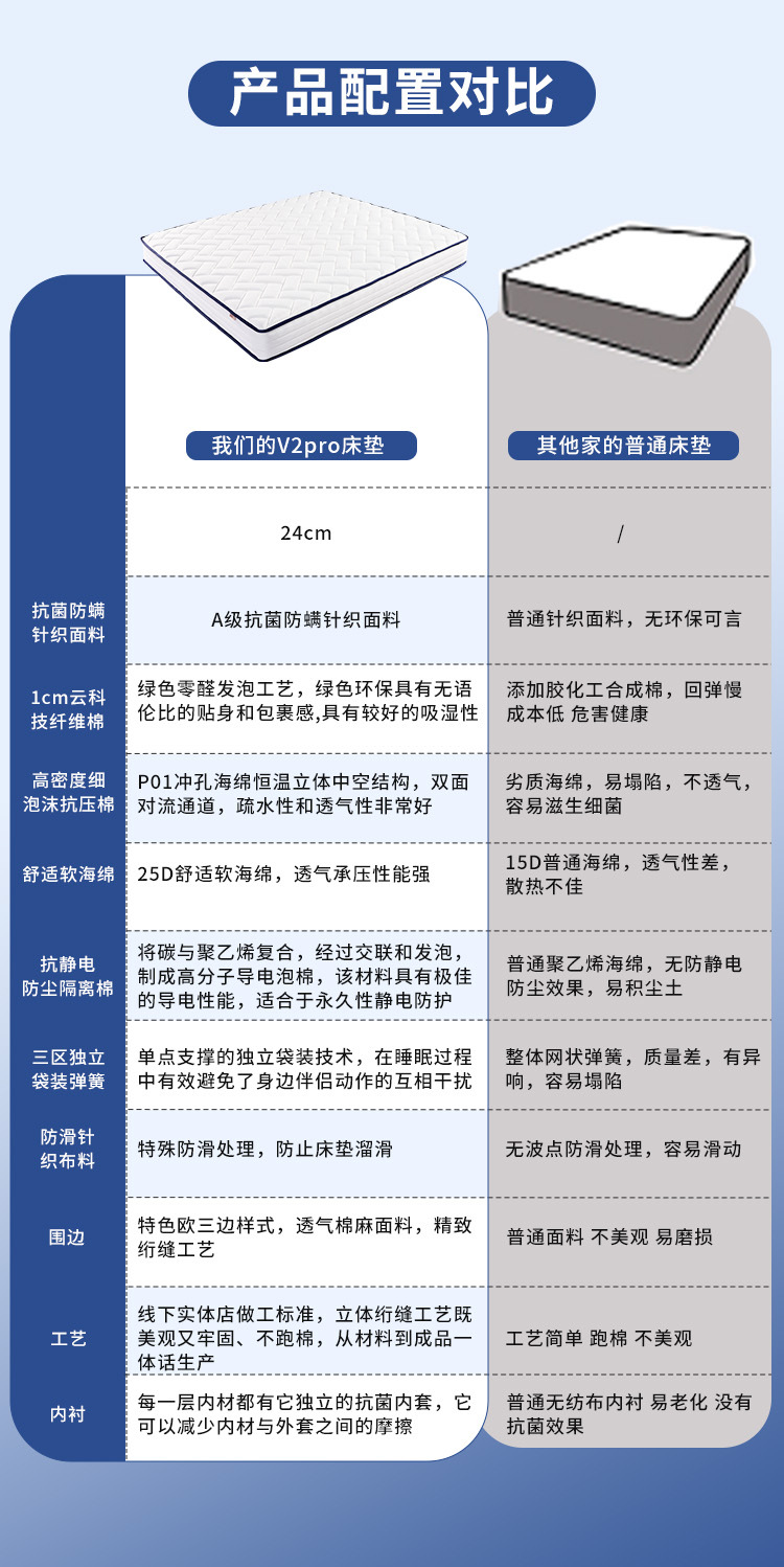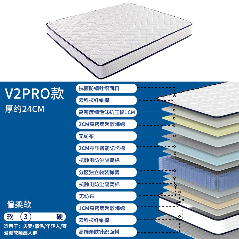 • V2 PRO [피부친화원단 + 섬유면 + 항압면 + 메모리폼 + 독립스프링 + 스펀지 + 섬유면]