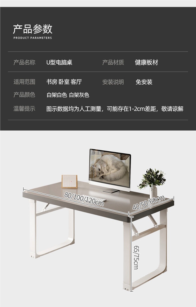 • 업그레이드된 두꺼운 데스크탑 80*40*65 [회색]