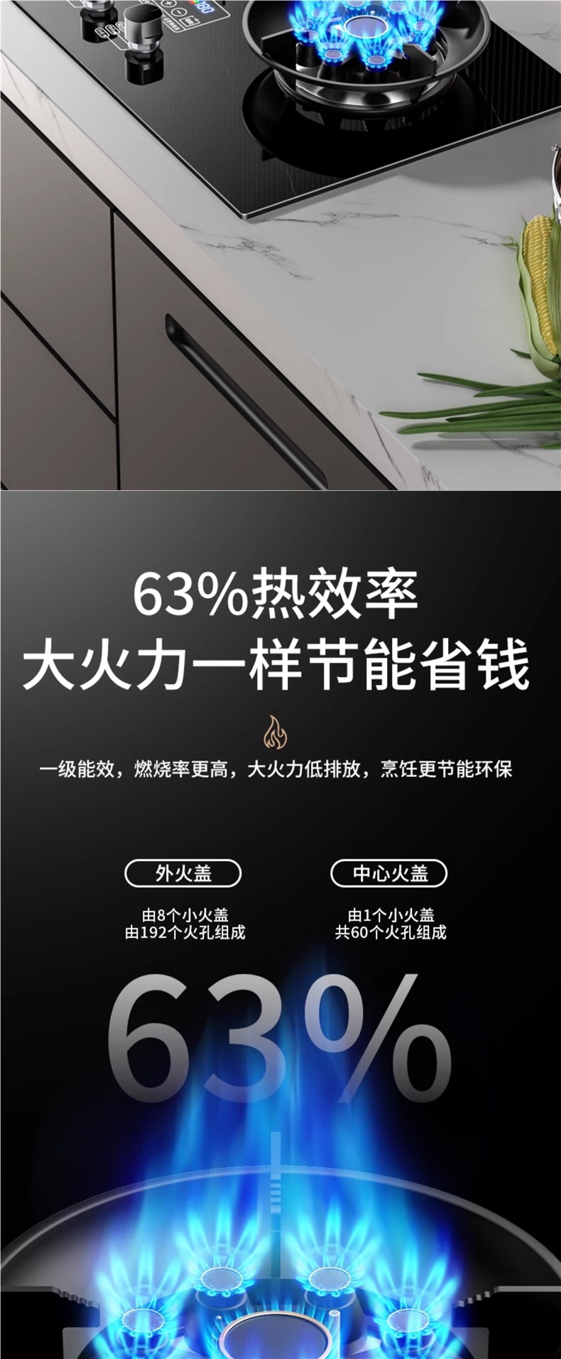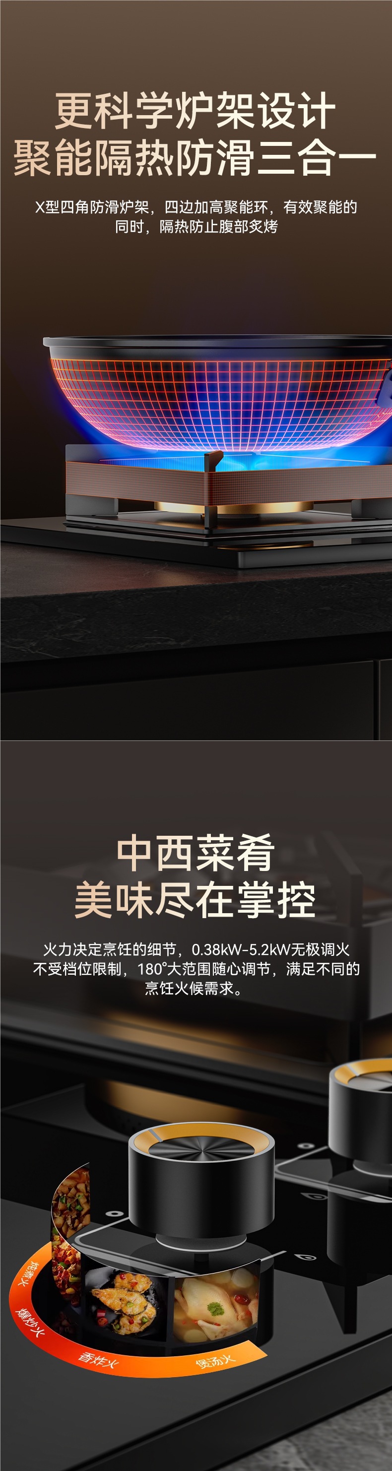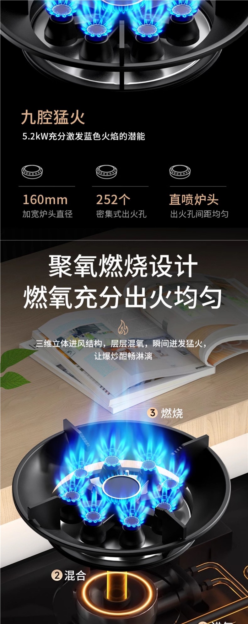 • 5.2KW 순수 구리 타이밍 이중 9 캐비티 + 에너지 수집 링 스토브 프레임 + 두꺼운 스테인레스 스틸