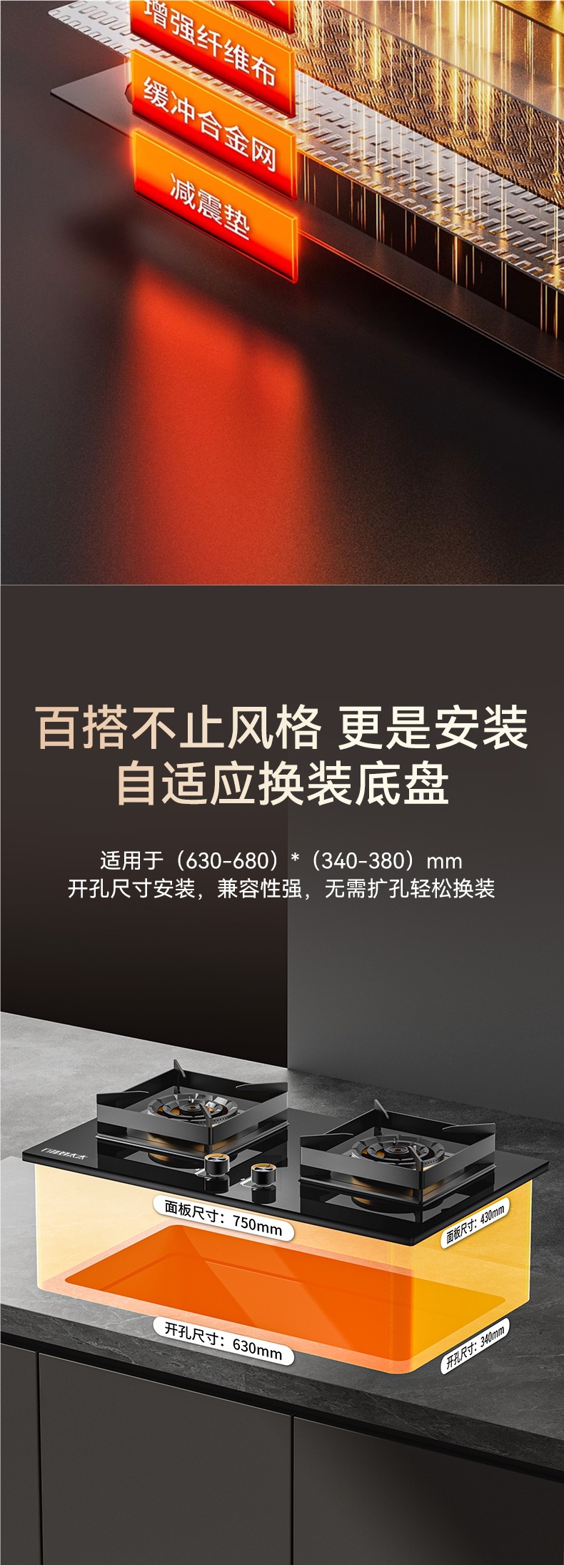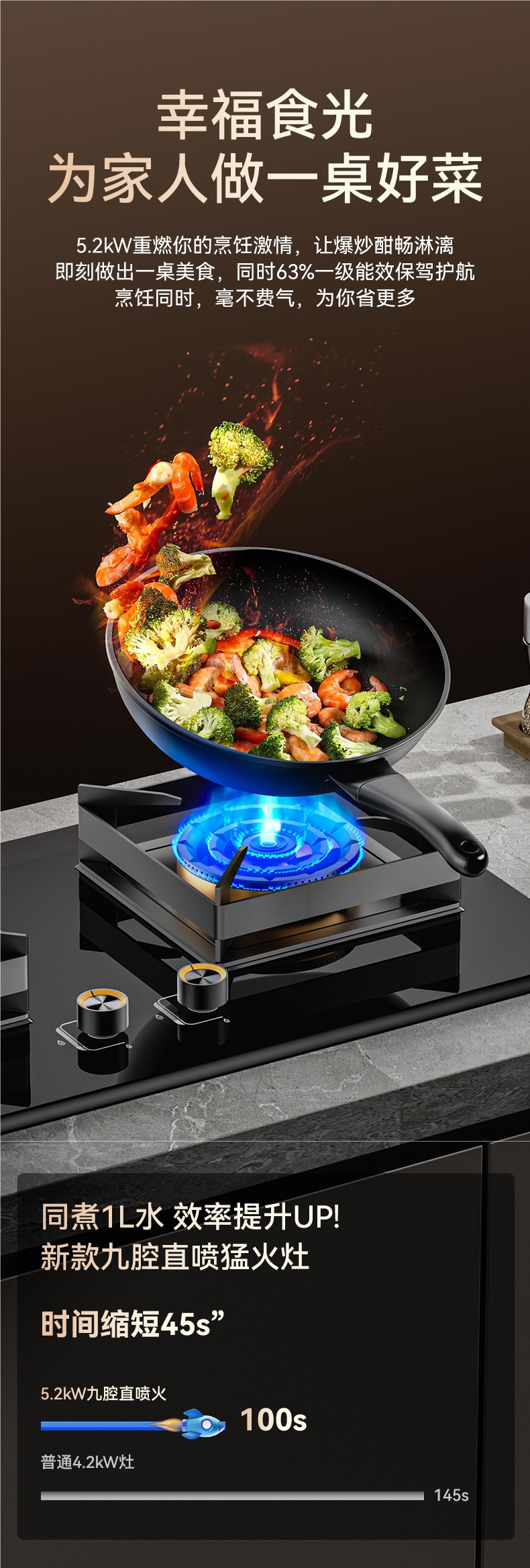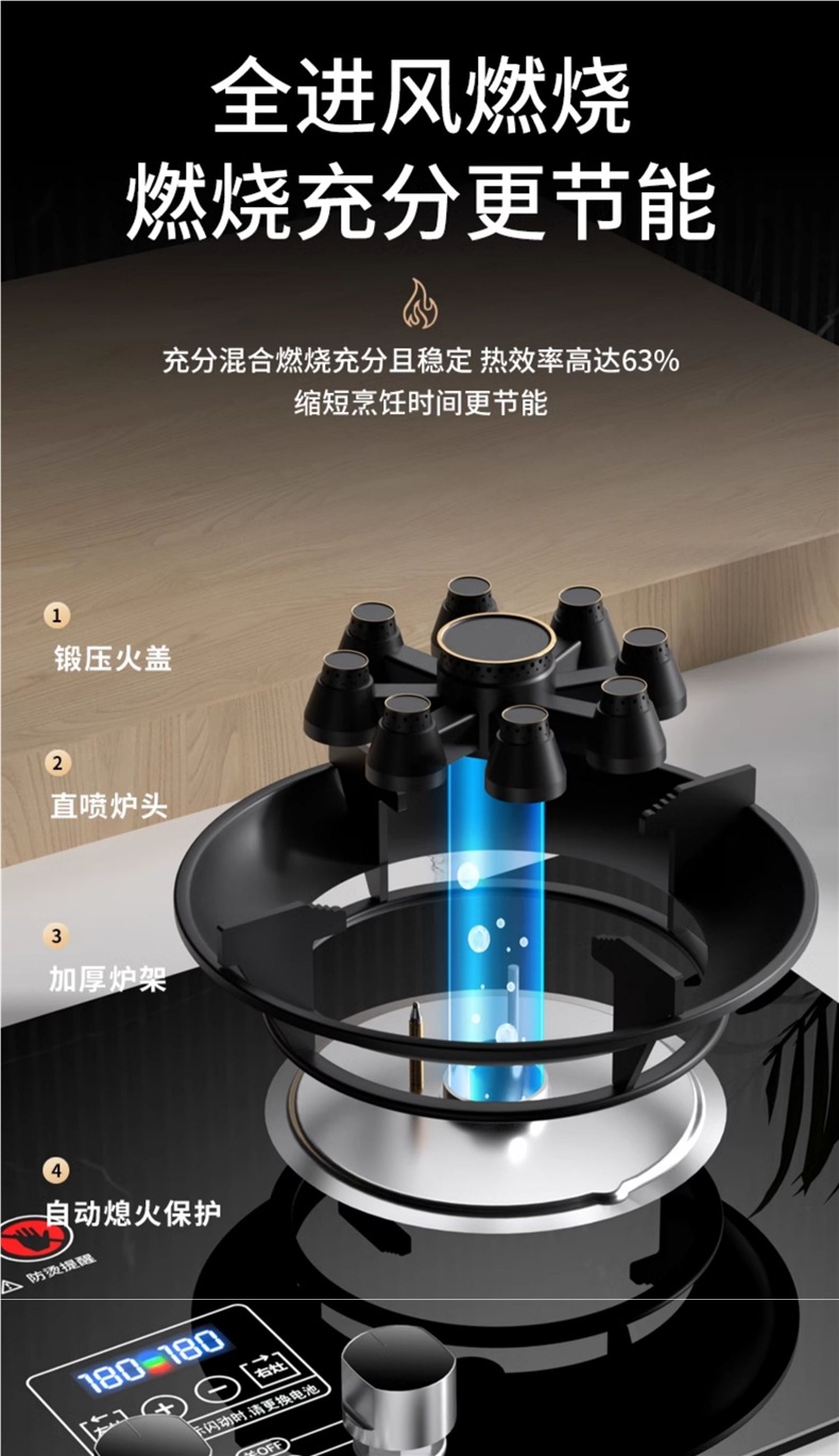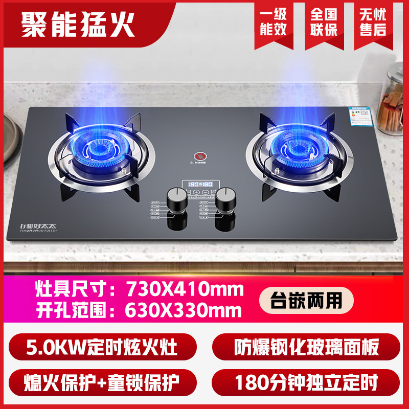 • 5.2KW 순수 구리 타이밍 이중 9 캐비티 + 에너지 수집 링 스토브 프레임 + 방폭 강화 유리