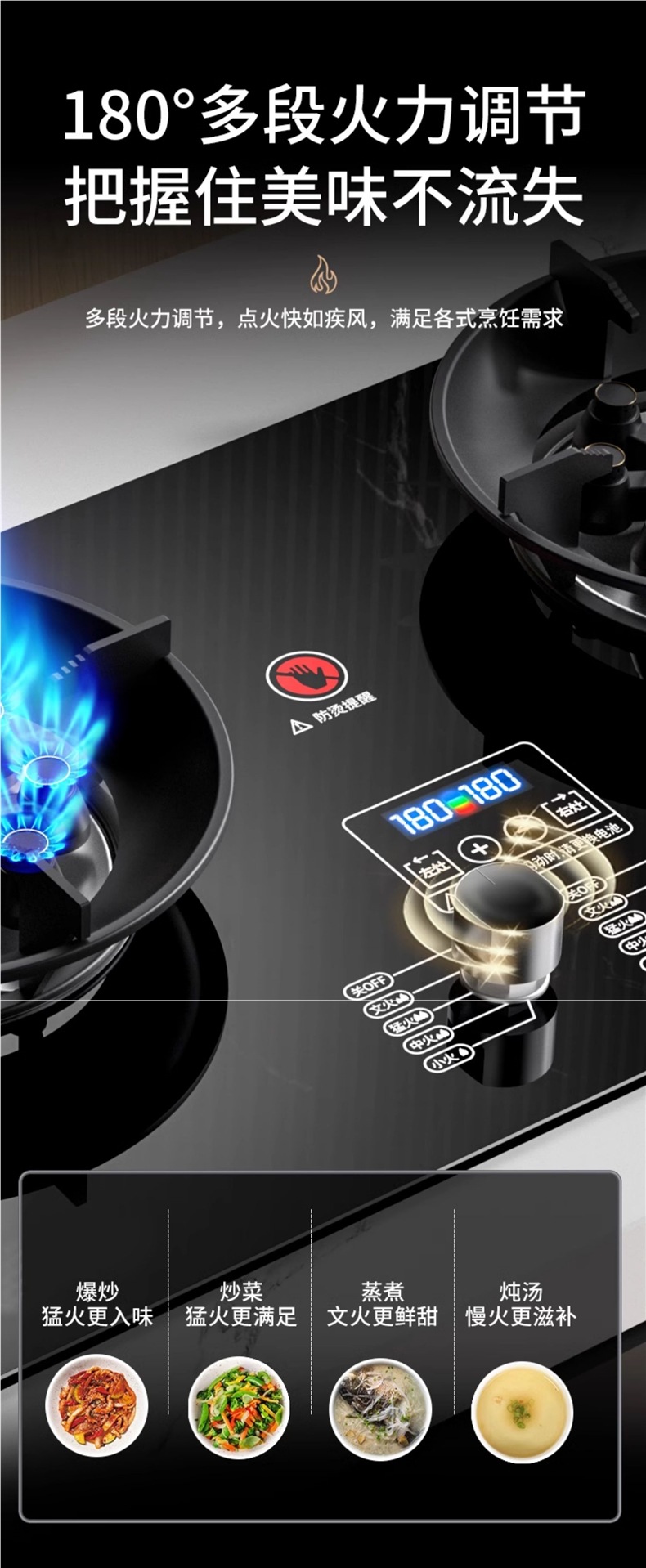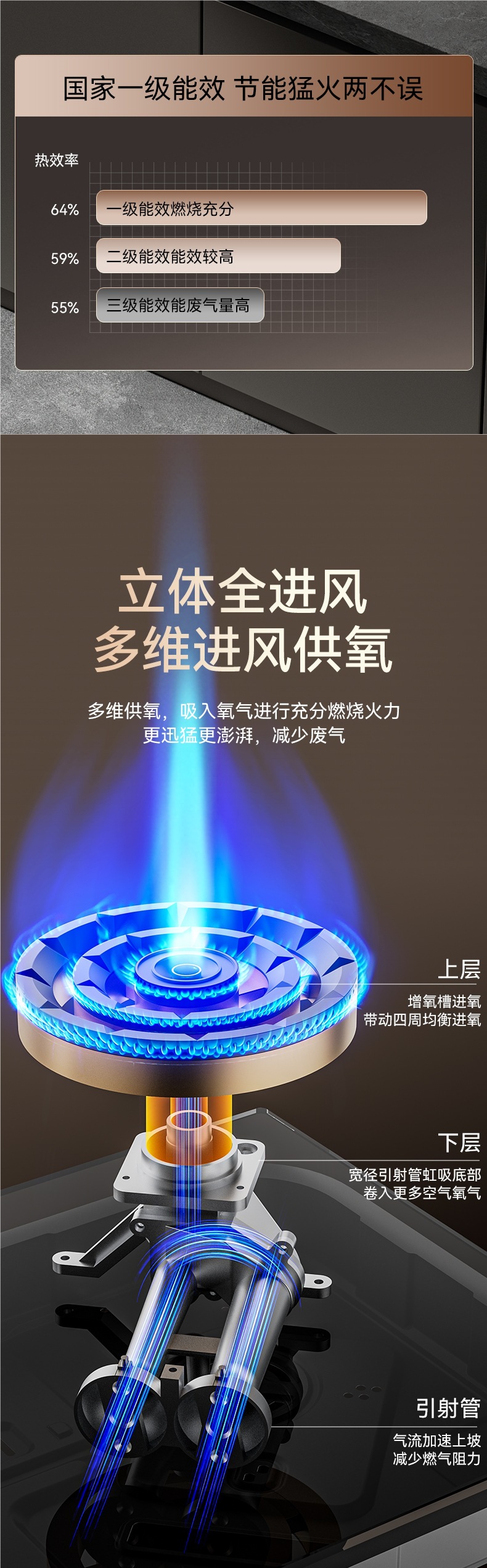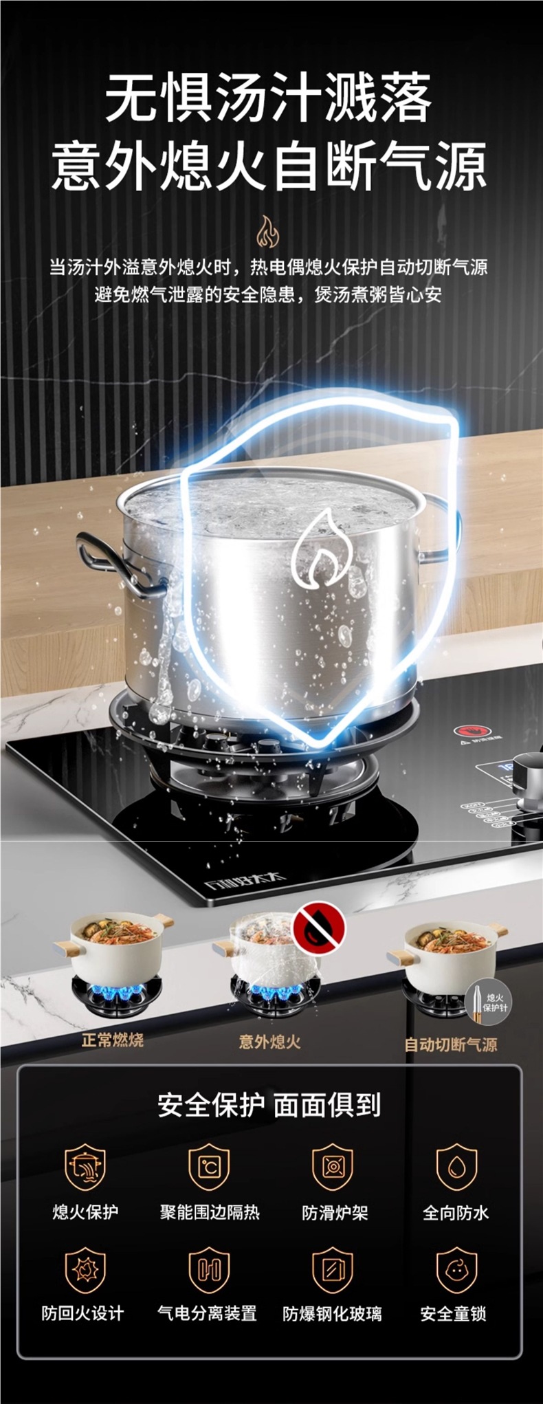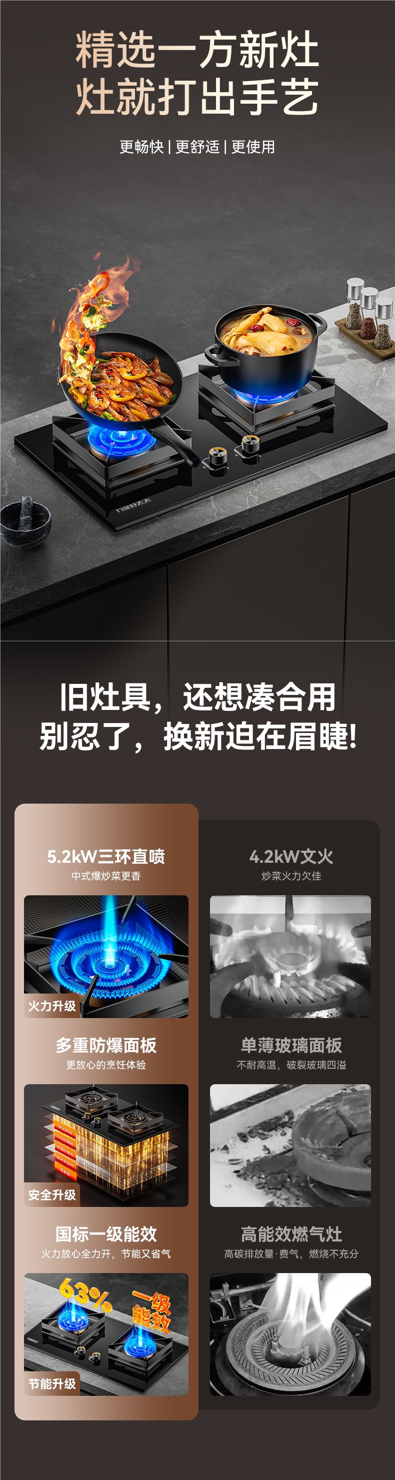 • 5.2KW 순수 구리 타이밍 이중 9 캐비티 + 에너지 수집 링 스토브 프레임 + 방폭 강화 유리