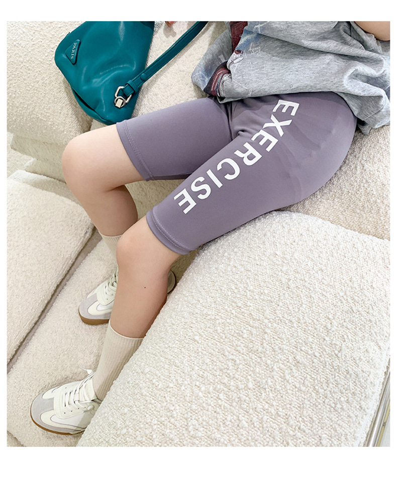 아동용 사이클링 팬츠 여름 얇은 여아 요가 스트레치 팬츠 슬림 하이 웨이스트 바비 팬츠 여아 5부 스포츠 팬츠