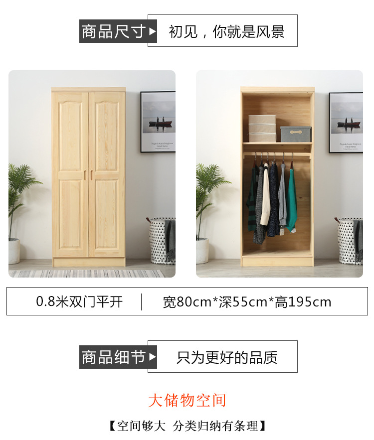 모든 단단한 나무 옷장, 원목 소나무, 간단하고 현대적인 슬라이딩 도어, 어린이용 2도어 캐비닛, 가정용 침실, 맞춤형 rω스토어 가기