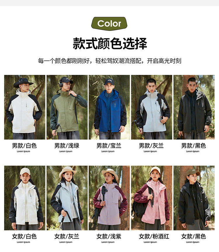 남성용 및 여성용 아웃도어 쓰리인원 재킷, 방풍 및 방수 등산 재킷, 커플 스타일 캐주얼 스포츠 윈드 브레이커스토어 가기