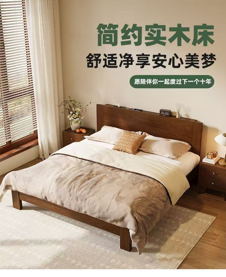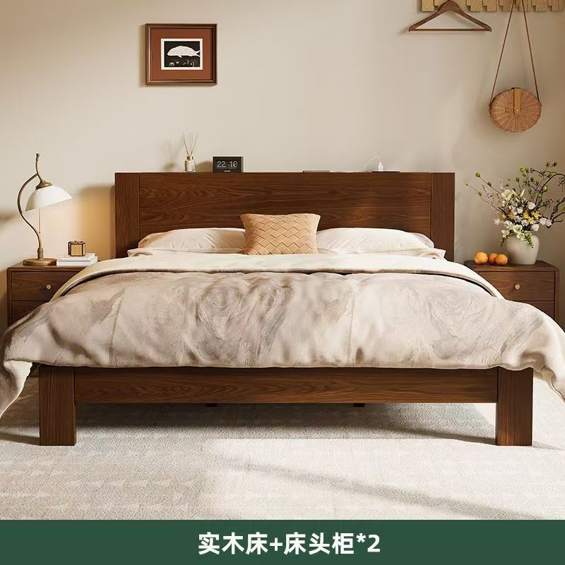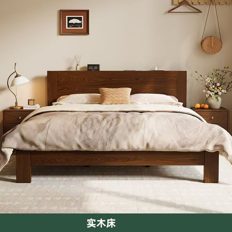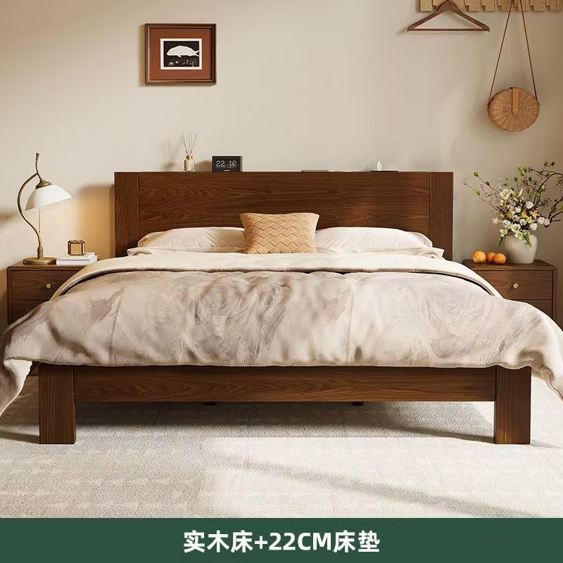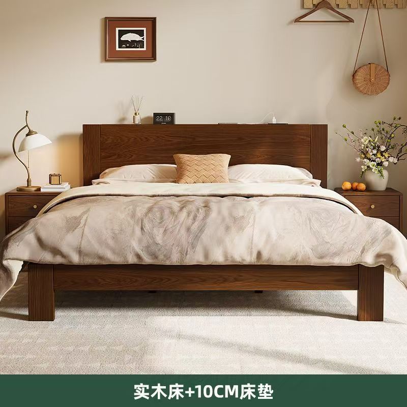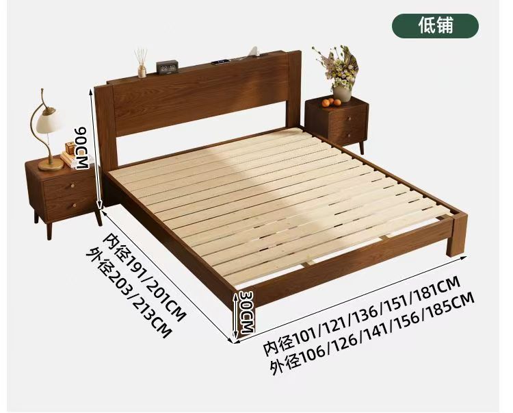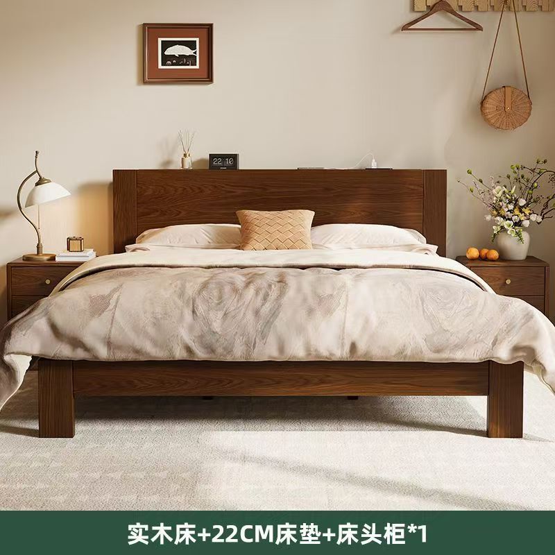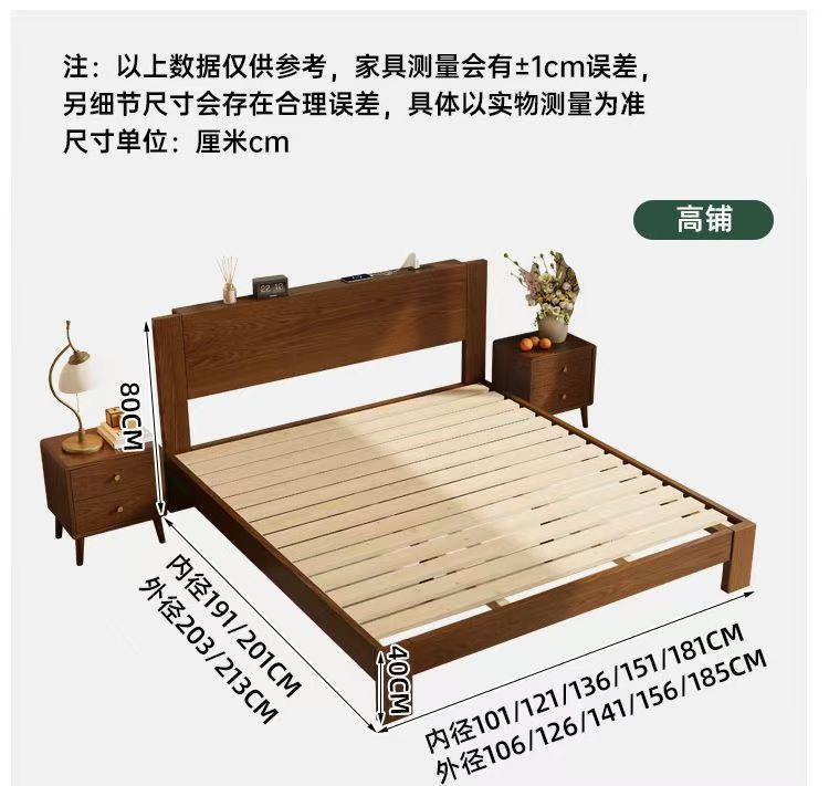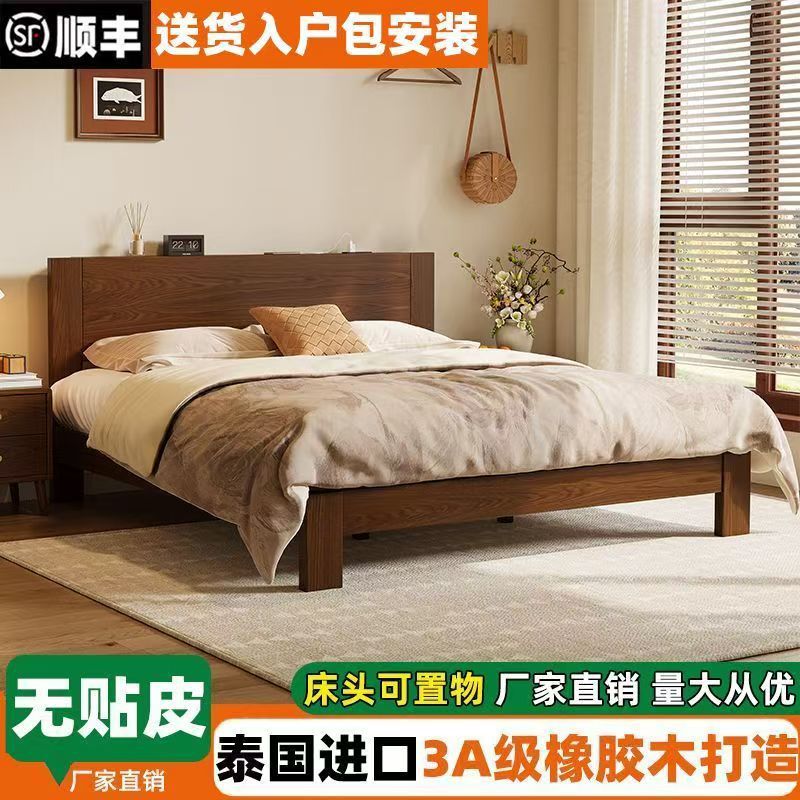 고무나무 원목 침대 1.8m 더블 침대 홈 침실 1.5m 임대 침대 경제형 1m 싱글 침대