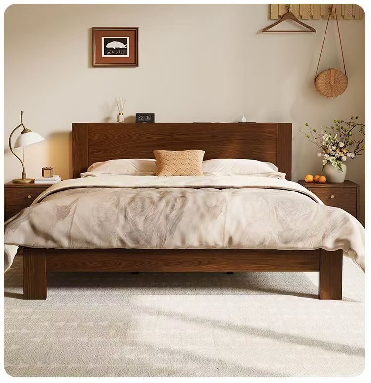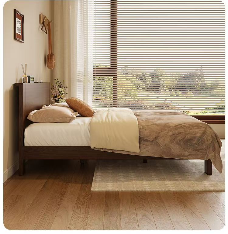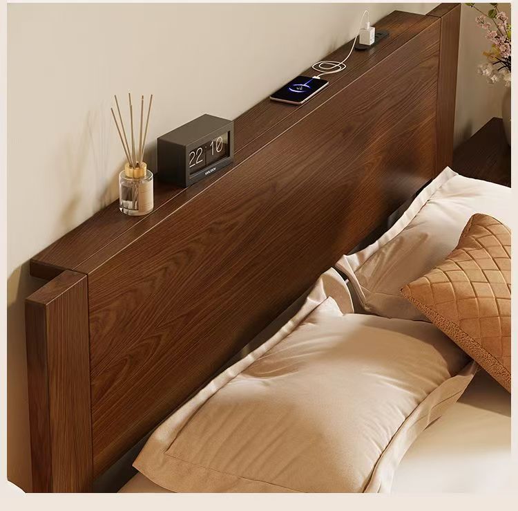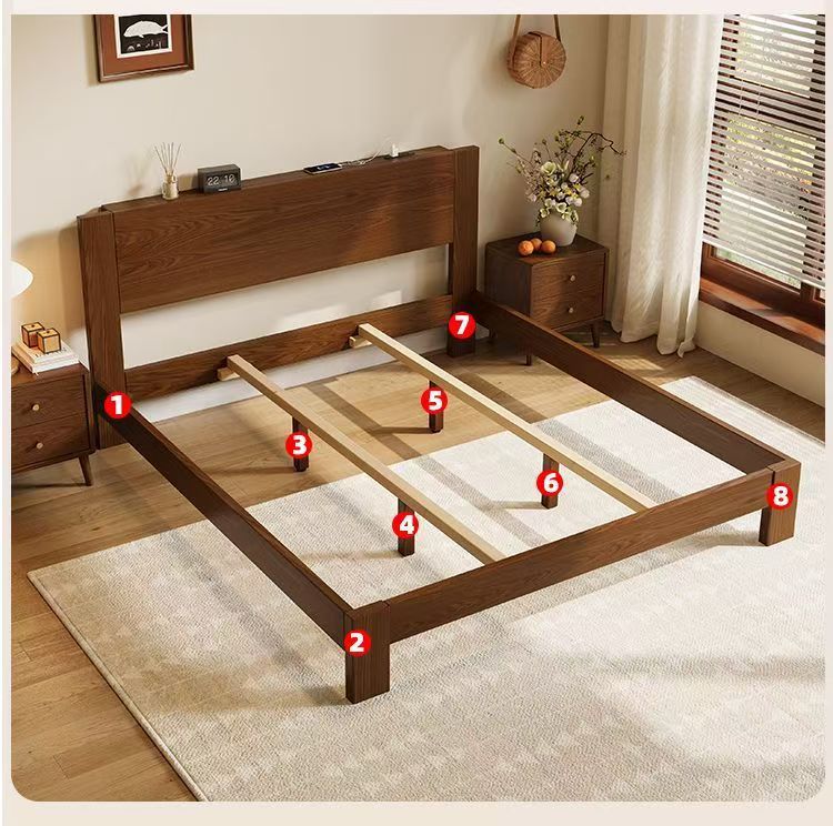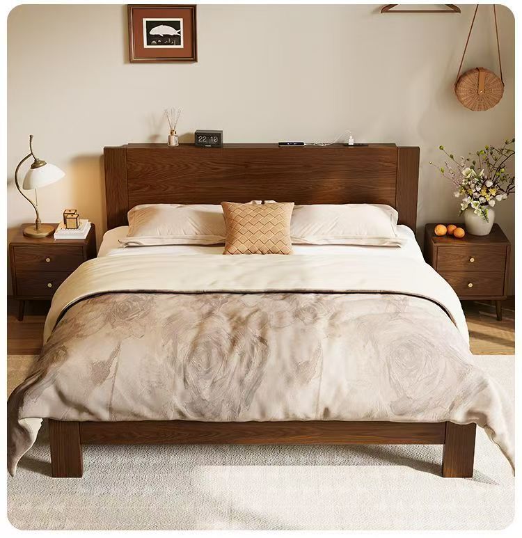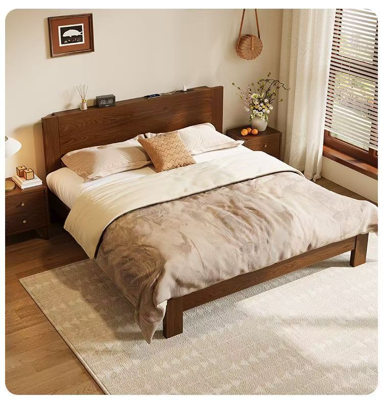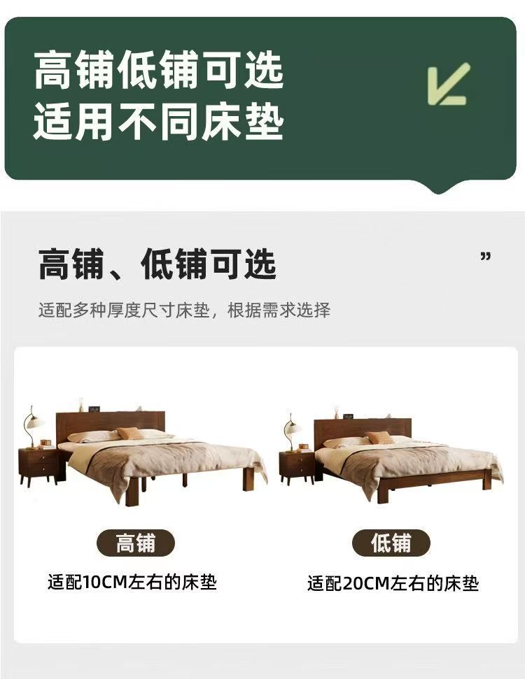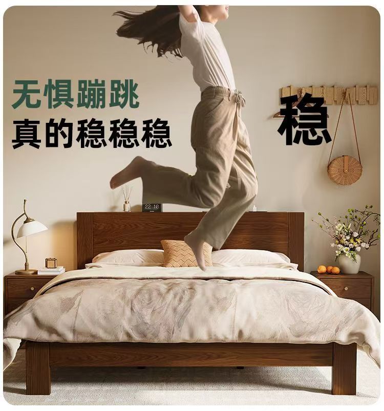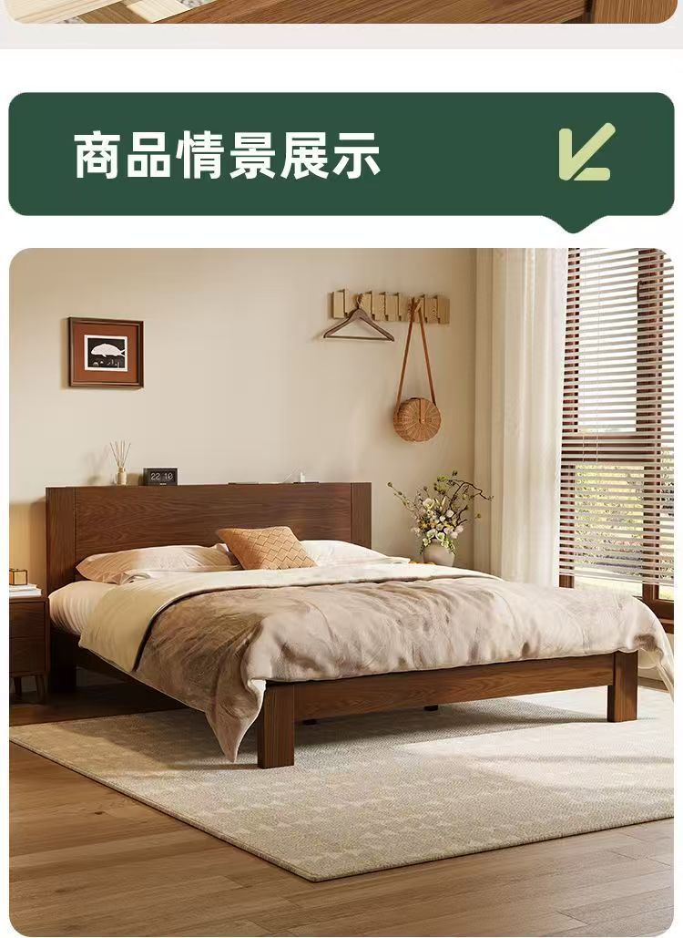 고무나무 원목 침대 1.8m 더블 침대 홈 침실 1.5m 임대 침대 경제형 1m 싱글 침대