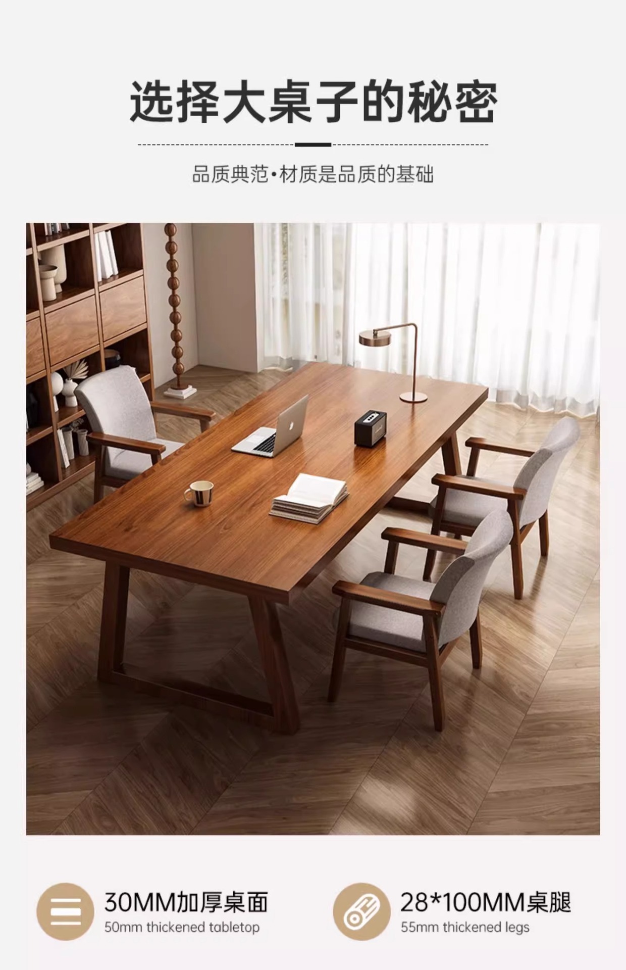 • [30MM 두껍게] 호두 색상 160*80*75 단단한 나무 다리 싱글 테이블