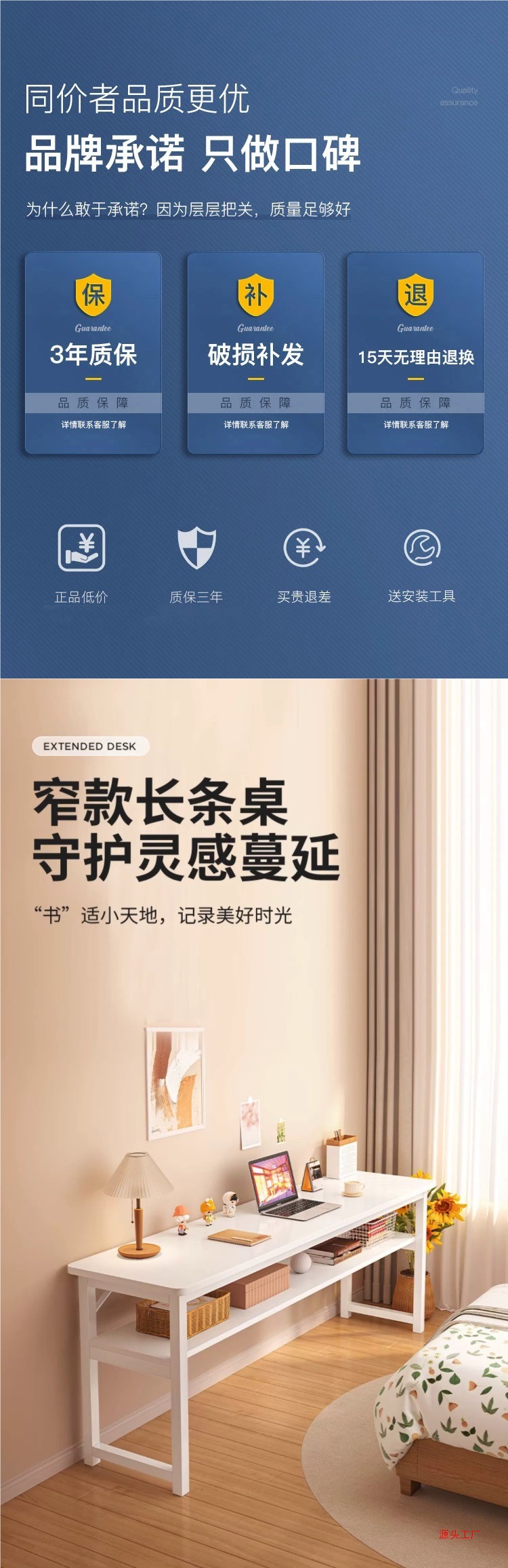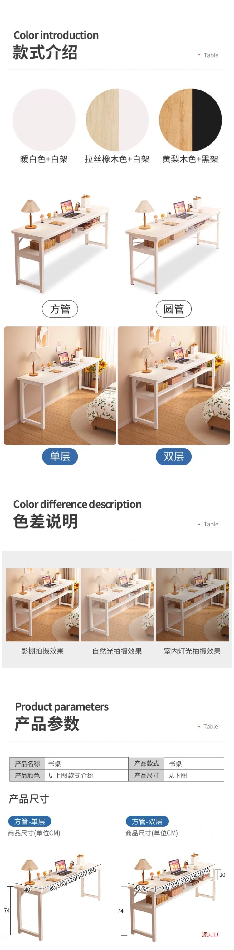 긴 테이블 소녀 침실 홈 책상 학습 쓰기 간단한 직사각형 컴퓨터 책상 작업대 임대 주택스토어 가기
