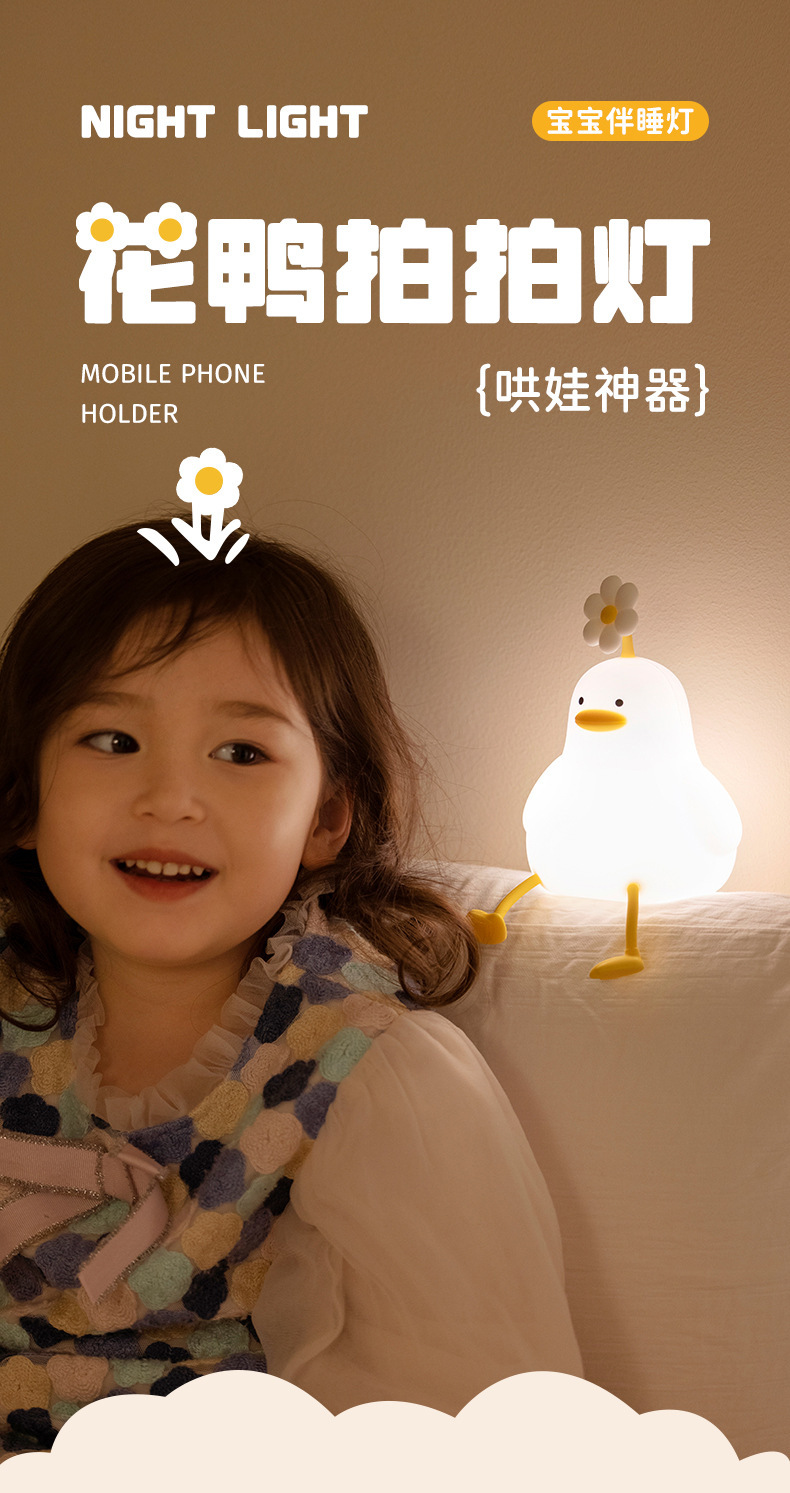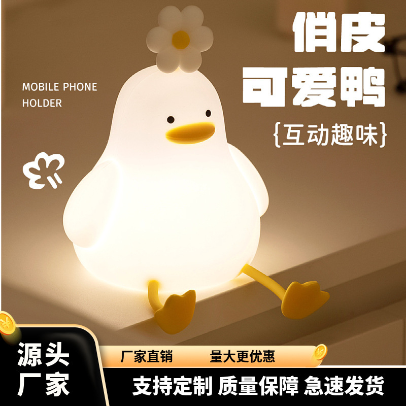 데이지 꽃 오리 야간 조명 팻 실리콘 램프 소녀와 어린이 귀여운 눈 보호 침실 수면 램프 머리맡 램프 도매