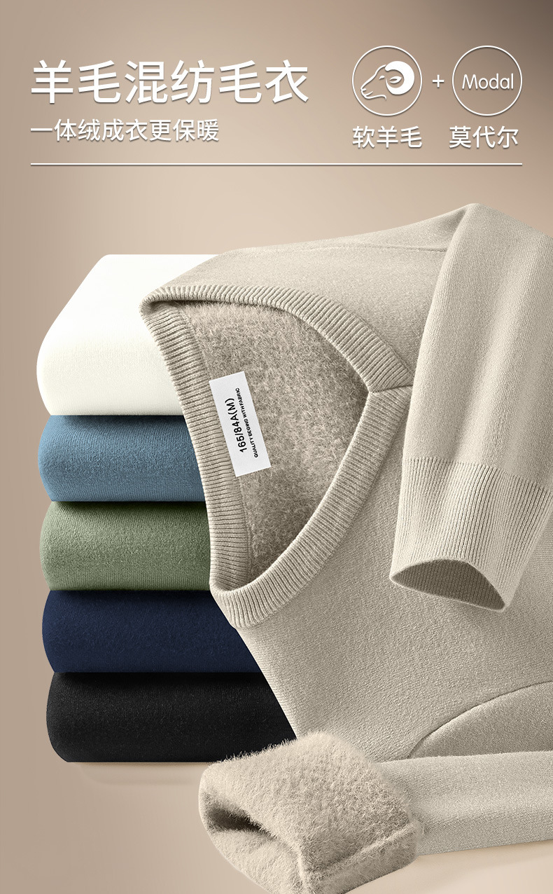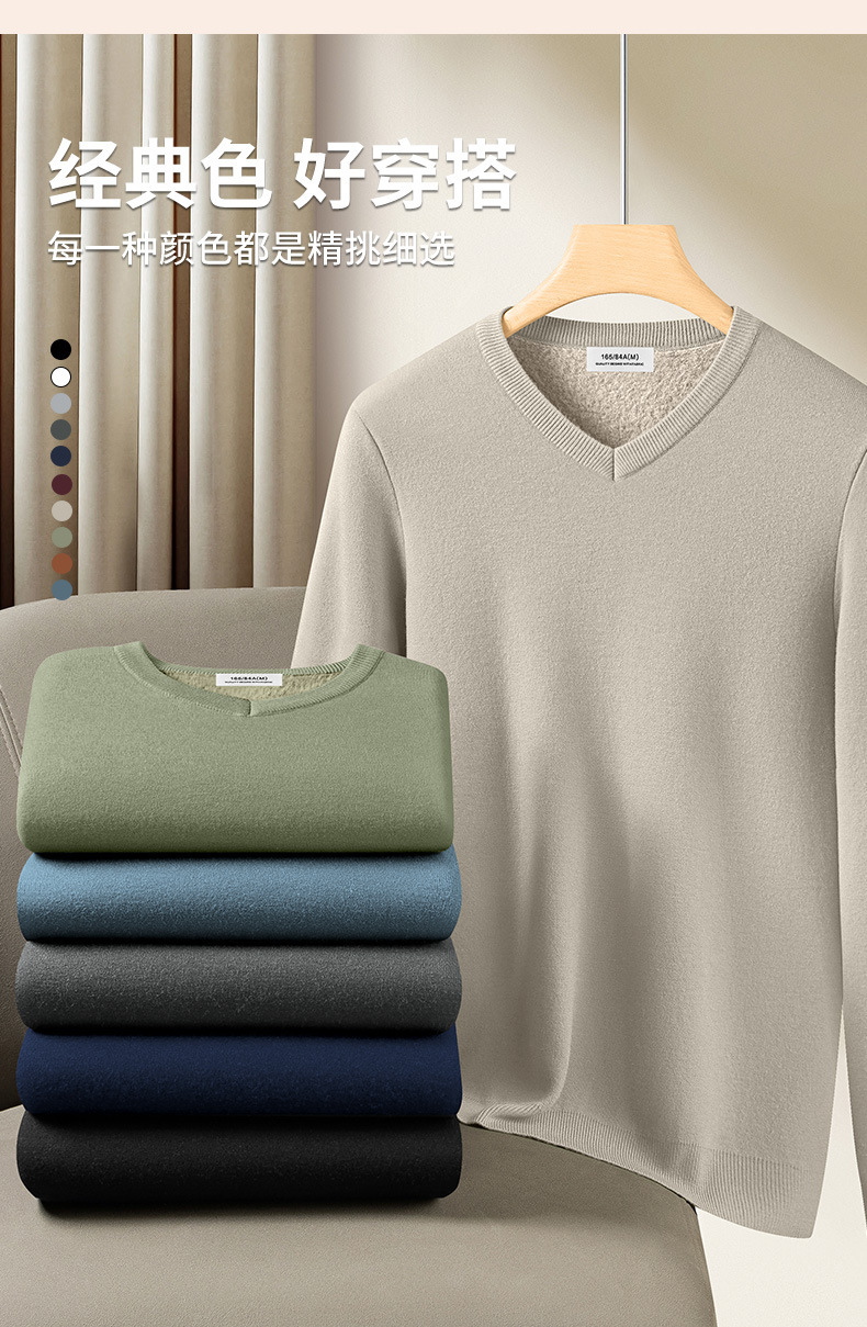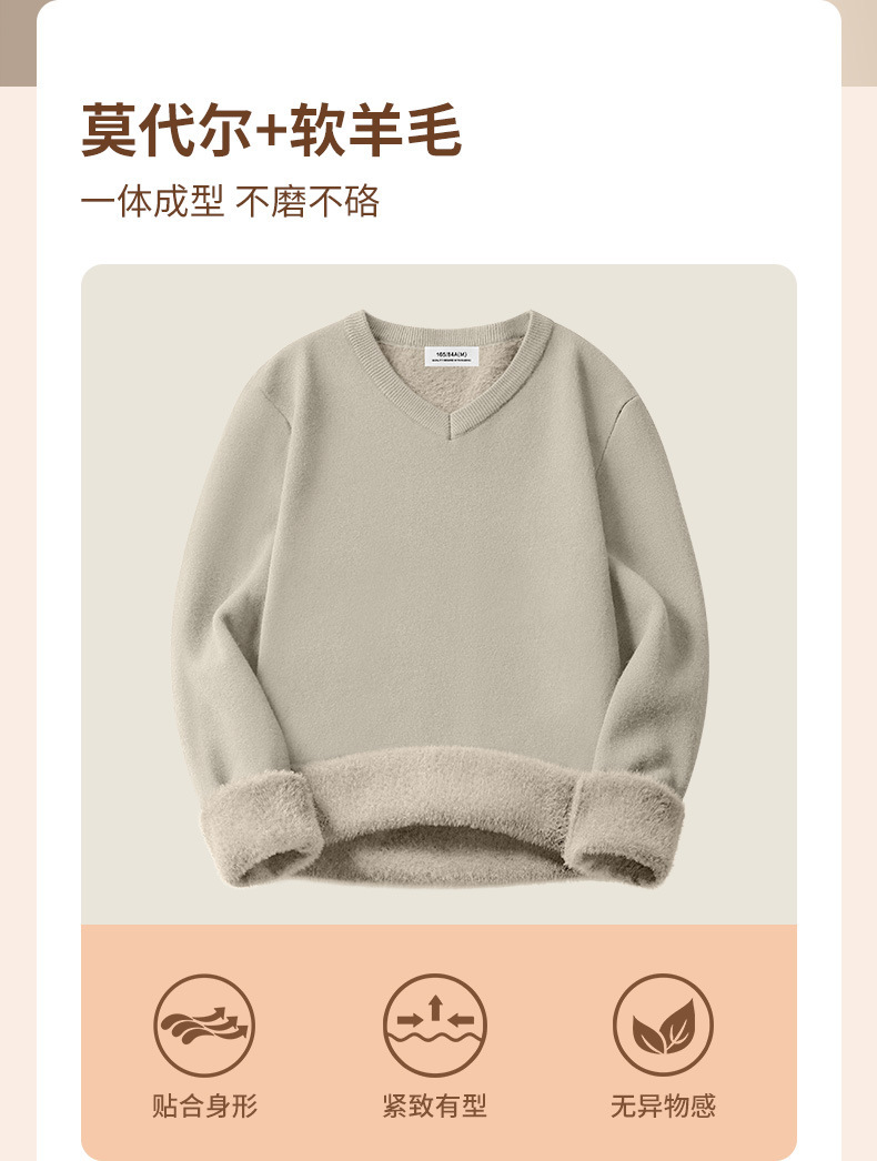 V 넥 650G 울 모달 스웨터 남성용 새 니트 따뜻한 플러스 벨벳 두꺼운 가을, 겨울 남성용 이너웨어