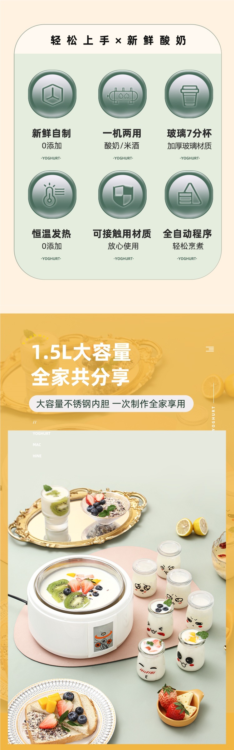 요구르트 기계 가정용 완전 자동 1.5L 미니 다기능 대용량 수제 막걸리 기계 작은 발효 기계 컵스토어 가기