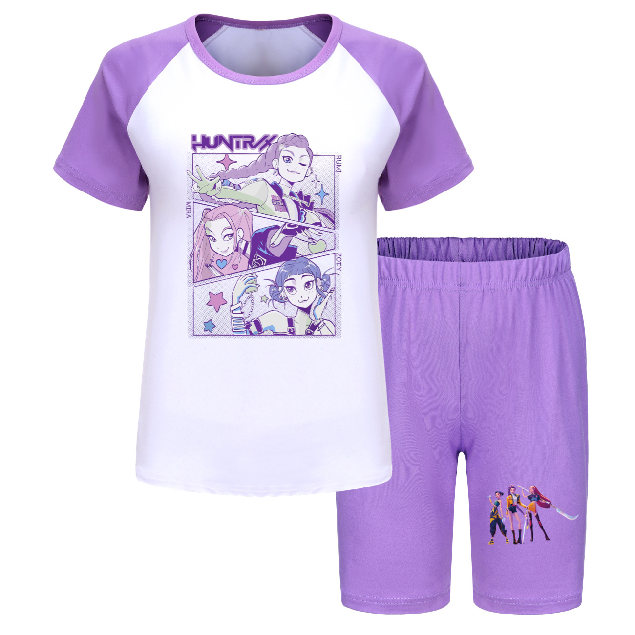 Kpop Hunter 마녀 그룹 어린이 여름 반팔 반바지 스포츠 정장 4810