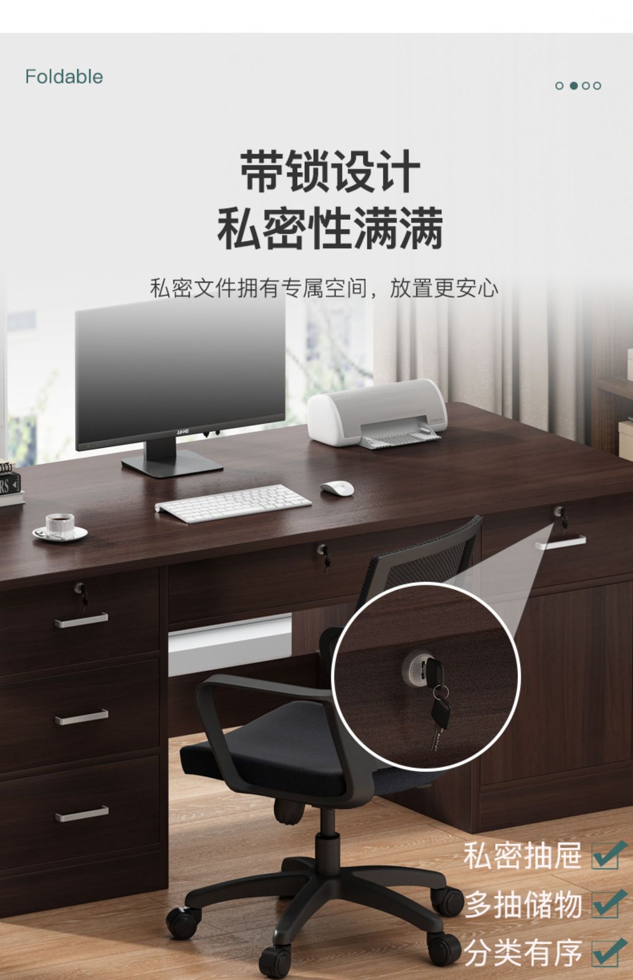 • 120cm 4단 서랍장, 키보드 다크월넛 + 회전의자 사진을 찍어 상품 수령 후 20위안 할인 받으세요!