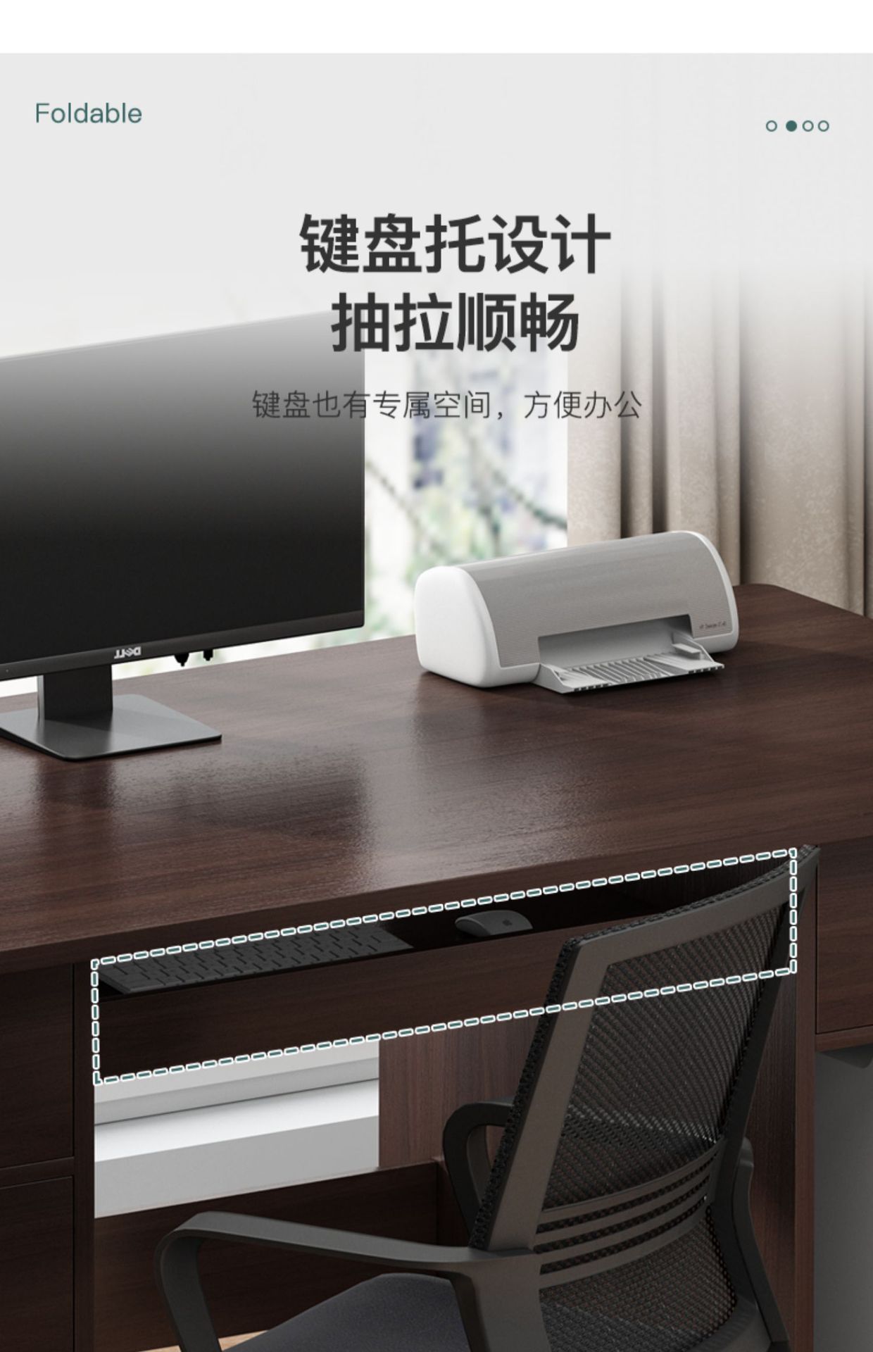 • 140cm 4단 서랍장(키보드 포함), 다크 월넛 + 회전의자 사진을 찍어 상품 수령 후 20위안 할인을 받으세요!