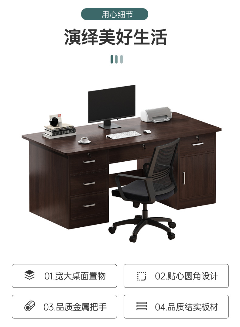 • 140cm 4개의 서랍, 키보드 다크 월넛 + 회전 의자, 리프팅 가능한 동적 요추 지지대 - 조절 가능한 팔걸이 - 3D 머리 받침 상품 수령 후 사진을 게시하고 20위안을 돌려받으세요!